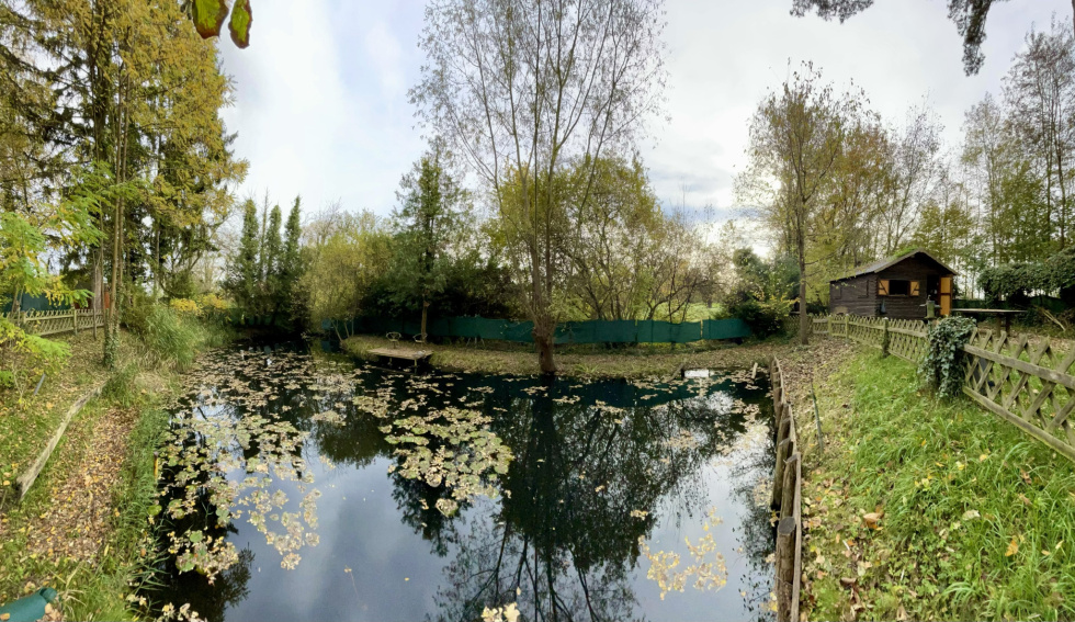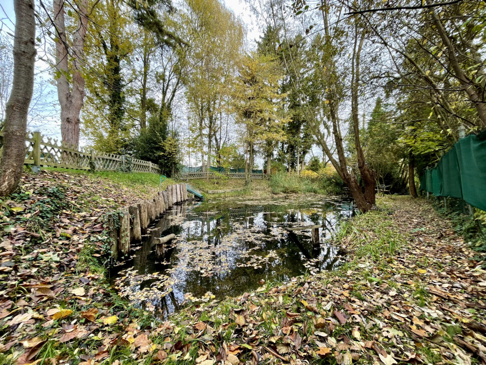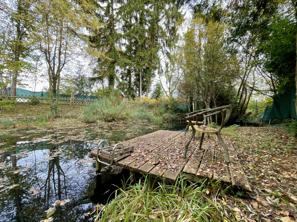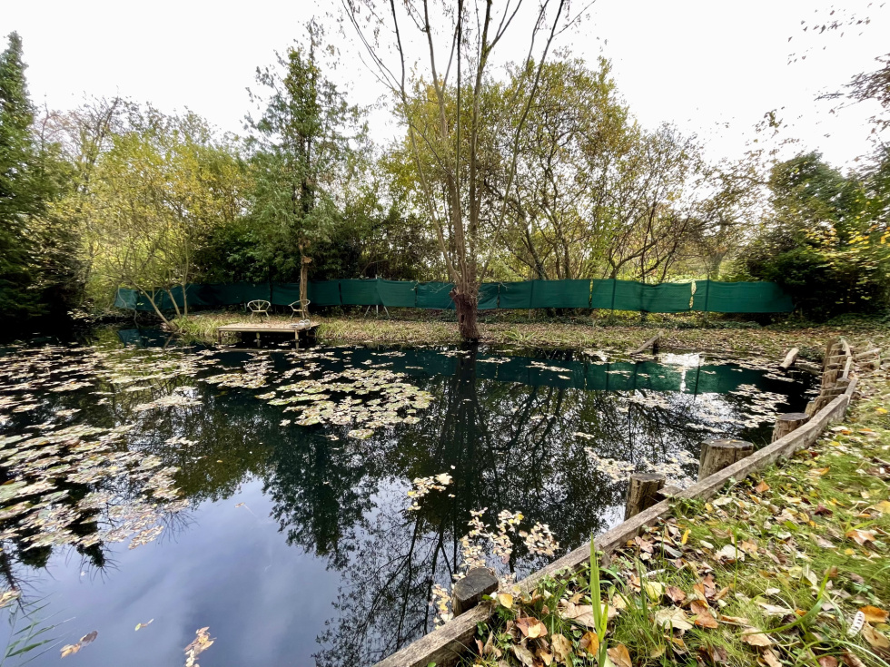 -- 1 étang (env. 30mx6m) avec ponton et rives stabilisées.