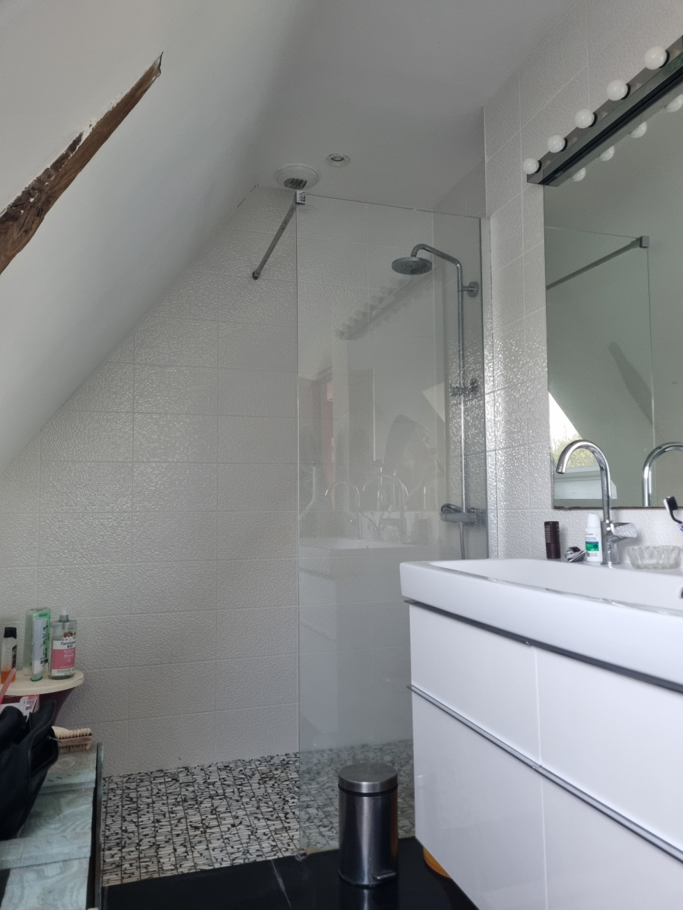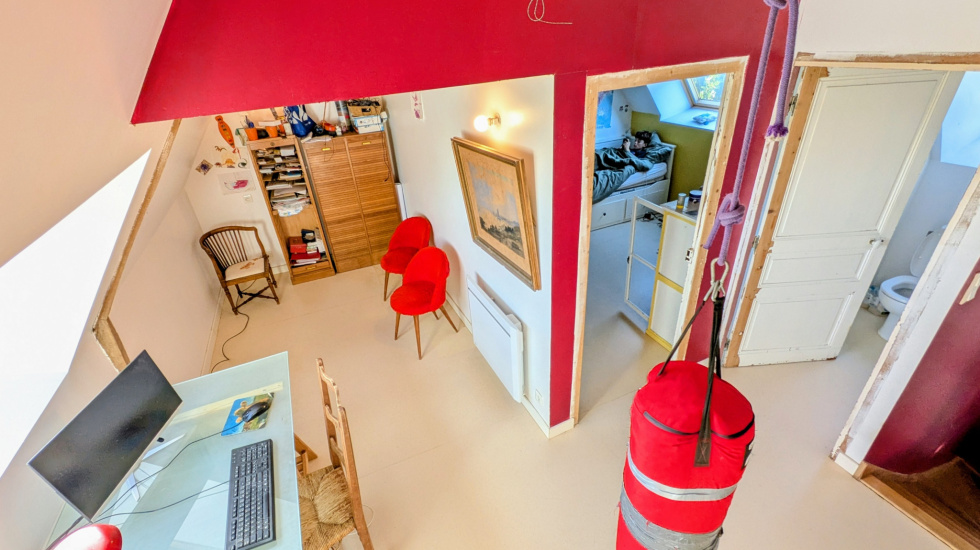 A l'étage, le palier dessert une mezzanine, 3 chambres dont une avec dressing, un WC et une salle de bain avec douche et baignoire.