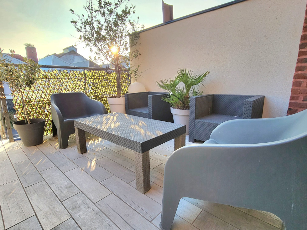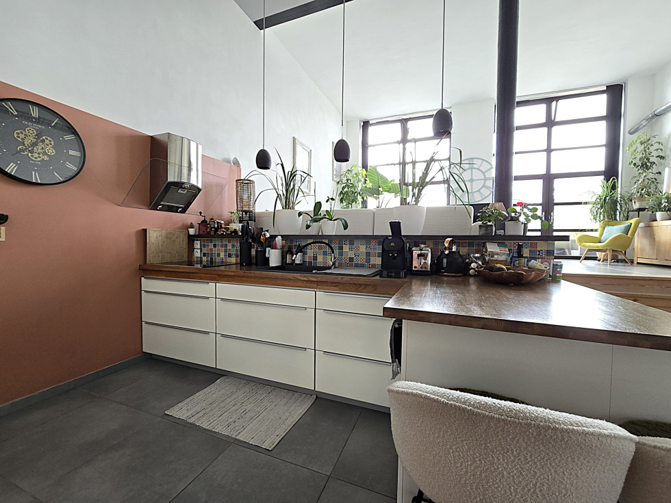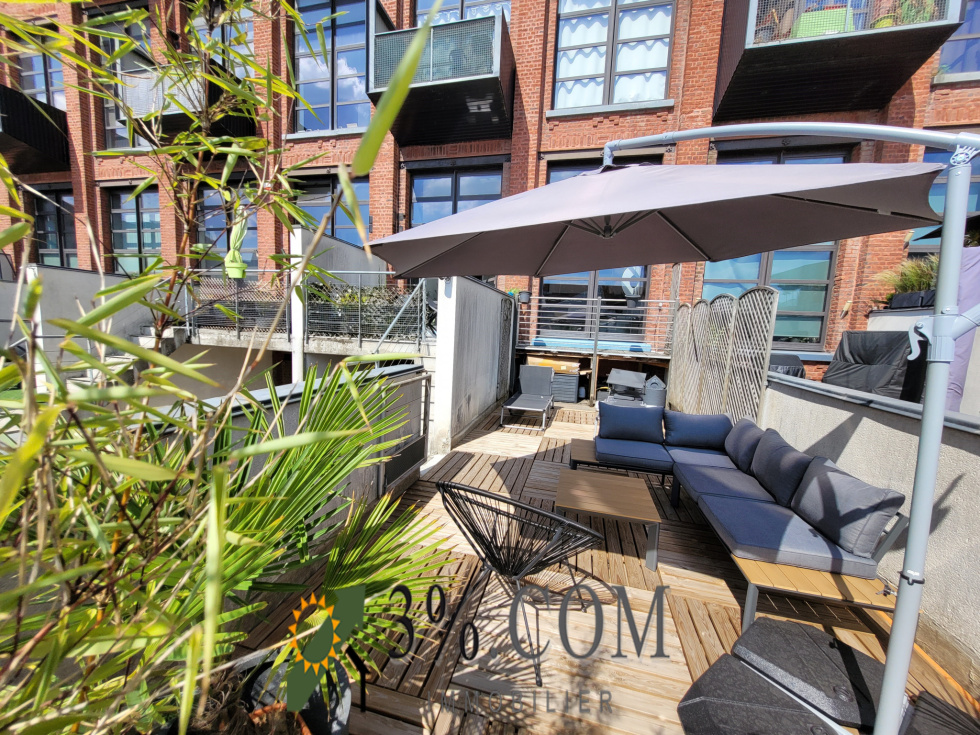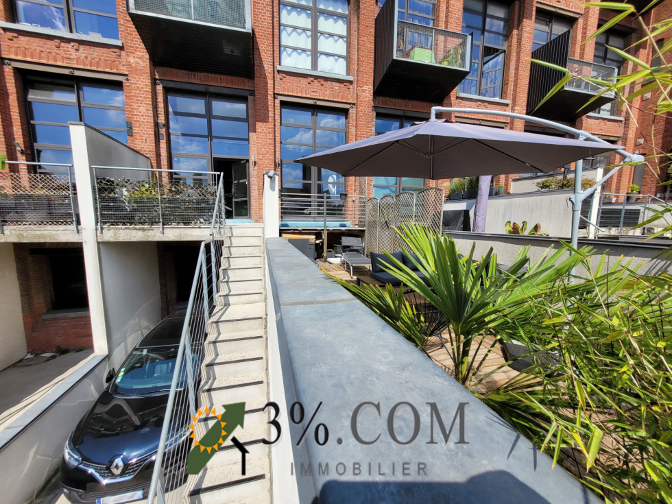 LOFT de 144 m² habitable, disposant de beaux volumes, de deux terrasses, d’un garage 2 voitures et d’un parking privatif.