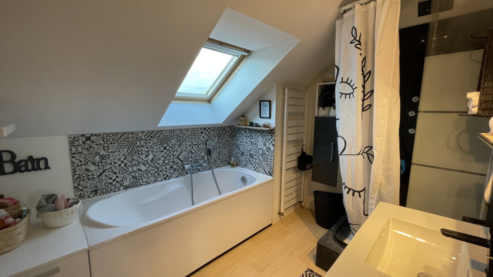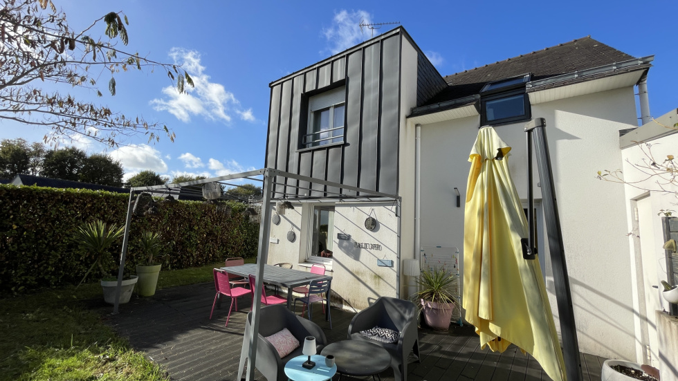 3%.Com Immobilier Julie & Romain BRIFFAUT Baden Implantée à proximité des commodités du bourg de Baden, au calme, et non loin des sentiers côtiers, maison lumineuse et confortable ! Sa localisation est son premier atout ! Prête à vivre, lumineuse et bien organisée, elle sera idéale pour une résidence principale, secondaire... Elle se compose d'une entrée avec wc, placards, un séjour, une cuisine neuve, une arrière cuisine/buanderie donnant sur la terrasse et le garage. La partie nuit se compose d'une chambre avec un grand dressing et une salle d'eau avec douche à l'italienne. A l'étage, trois grandes chambres dont une de plus de 15m², un palier, une salle de bain avec douche et baignoire. A l'extérieur, pas de vis à vis, une grande terrasse, le tout exposé plein sud. Deux stationnements. Prix de vente frais d'agence inclus de 458 000 € soit 2.92% de frais d'agence à la charge de l'acquéreur Prix de vente hors frais d'agence de 445 000 € Contactez Romain BRIFFAUT au 06 24 91 24 71-RSAC de Vannes 820 039 162- Agent commercial en immobilier.