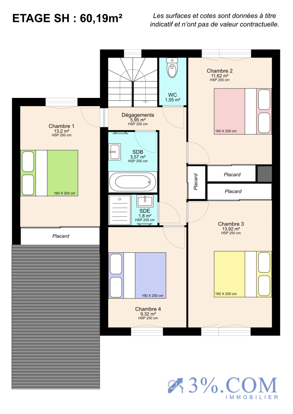 ***ETAGE : 4 chambres _ SDB _ SDE _ WC _ Nombreux placards intégrés _ Stockage (au-dessus du garage)