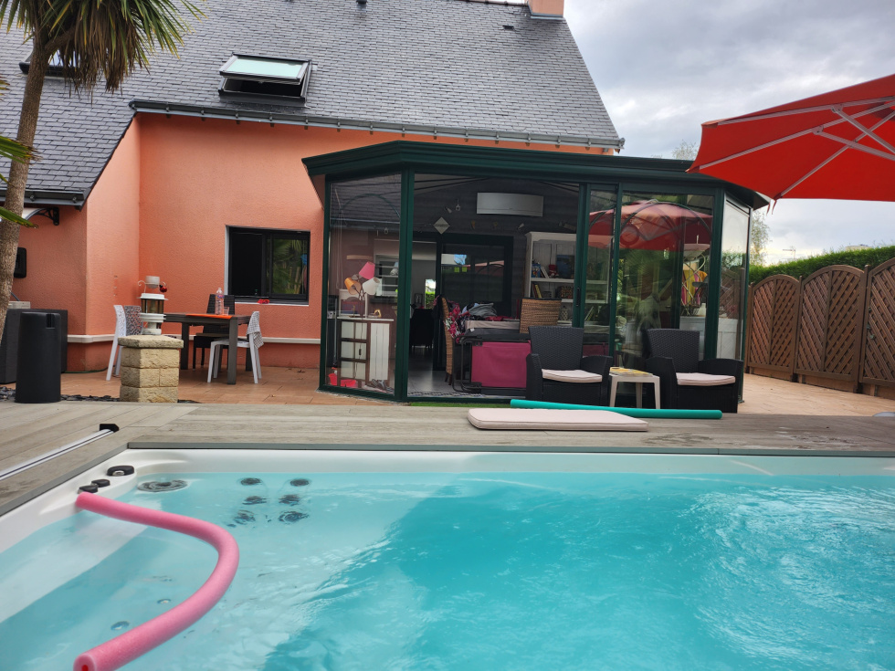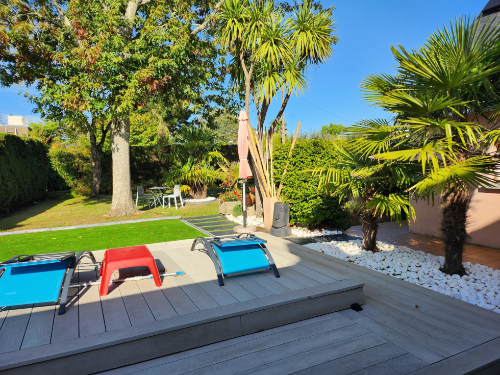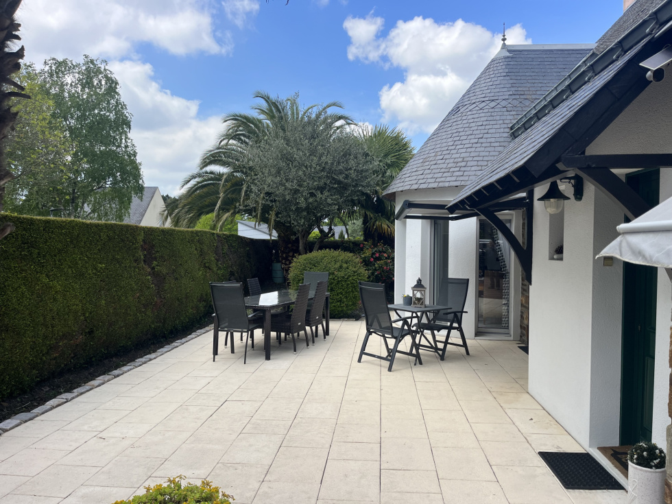 Située à 2,5 km de L'Avenue du Géneral de Gaulle et 2,8 km de la baie de La Baule. Quartier calme et résidentiel, sur les hauteurs de La Baule. Villa de 170 m² habitable avec un garage de 73 m² traversant (double portails sectionnels électriques, évier et emplacement lave linge). Grenier aménageable de 70m² au sol. Sur un terrain de 715 m² arboré et paysagé avec piscine posée en 2019 (jacuzzi, nage à contre courant, balnéo, terrasse recouvrante et coulissante en résine de synthèse), Comprenant: En rdc: Hall d'entrée. Un séjour-salon-cuisine aménagée et équipée (four, plaque, hotte, lave vaisselle, frigo-congélateur, four micro-onde et plan de travail en granit) de 50 m² avec cheminée et insert sur terrasse plein Sud. Une véranda de 20 m² équipée d'une clim réversible avec acces direct à la piscine et terrasse. Une arrière cuisine de 9 m² aménagée. Un dressing de 9 m². Une suite de 16.5 m² (salle d'eau, meuble double vasque, rangements sur mesure et sèche serviette). Un wc avec lave mains. A l'étage: Une chambre de 16 m² (18.5m² au sol) sur balcon plein Sud. Une chambre de 9.5 m² (13m² au sol). Une chambre de 11.5 m² (15m² au sol). Une salle de bain (baignoire et douche à l'italienne) meuble double vasque, sèche serviette et wc. Possibilité d'ouverture sur le grenier par une chambre et d'aménager les 70 m². Chauffage électrique. Taxe foncière de 2100 euros. Double vitrage alu et volets roulants électriques. Panneaux photovoltaîques. Christophe Oumalou: 06.34.46.03.41. RSAC 520 302 852 000 27