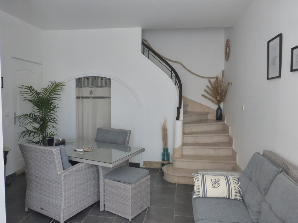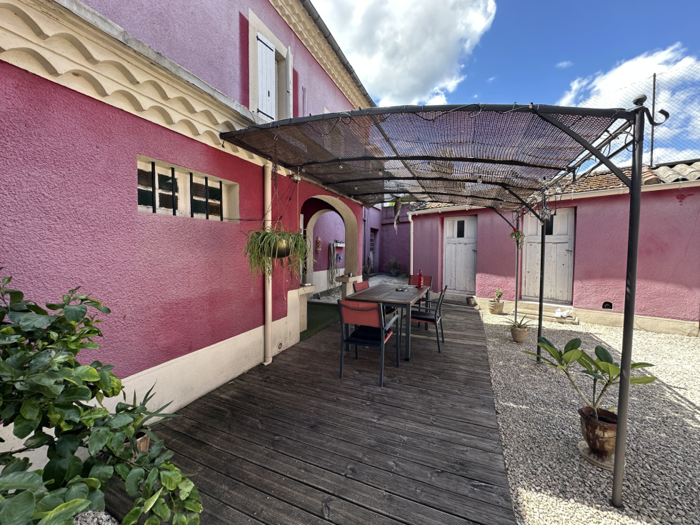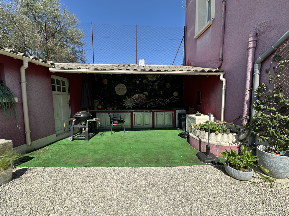 Du côté cuisine d’été se trouve un espace terrasse avec 4 petits débarras indépendants ( rangements outillages , jardinage et divers….)