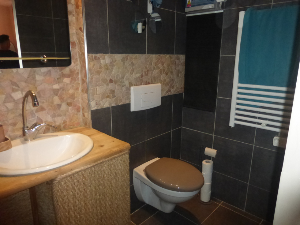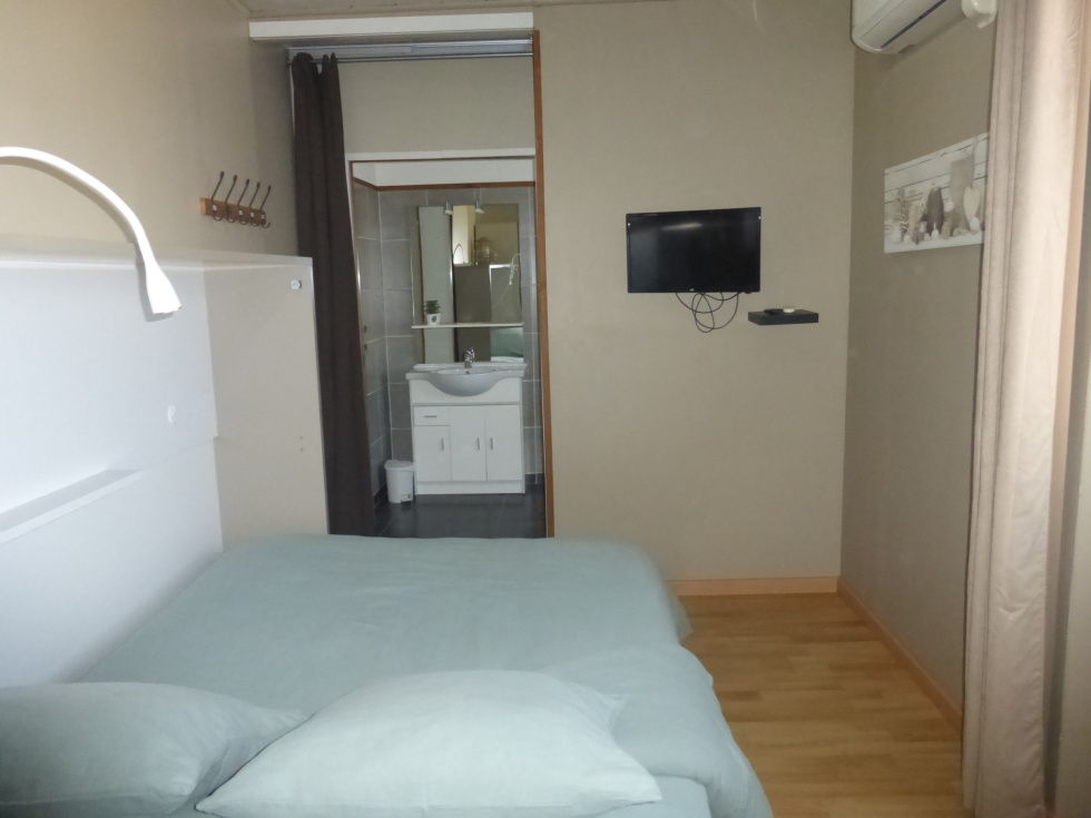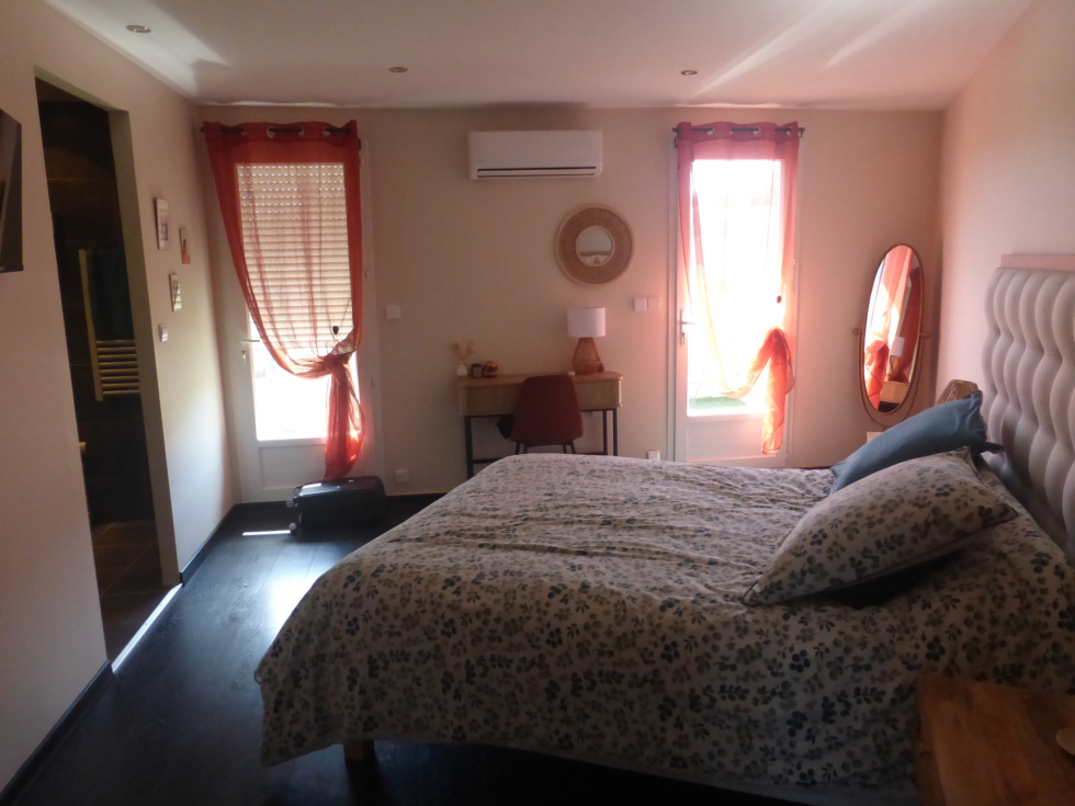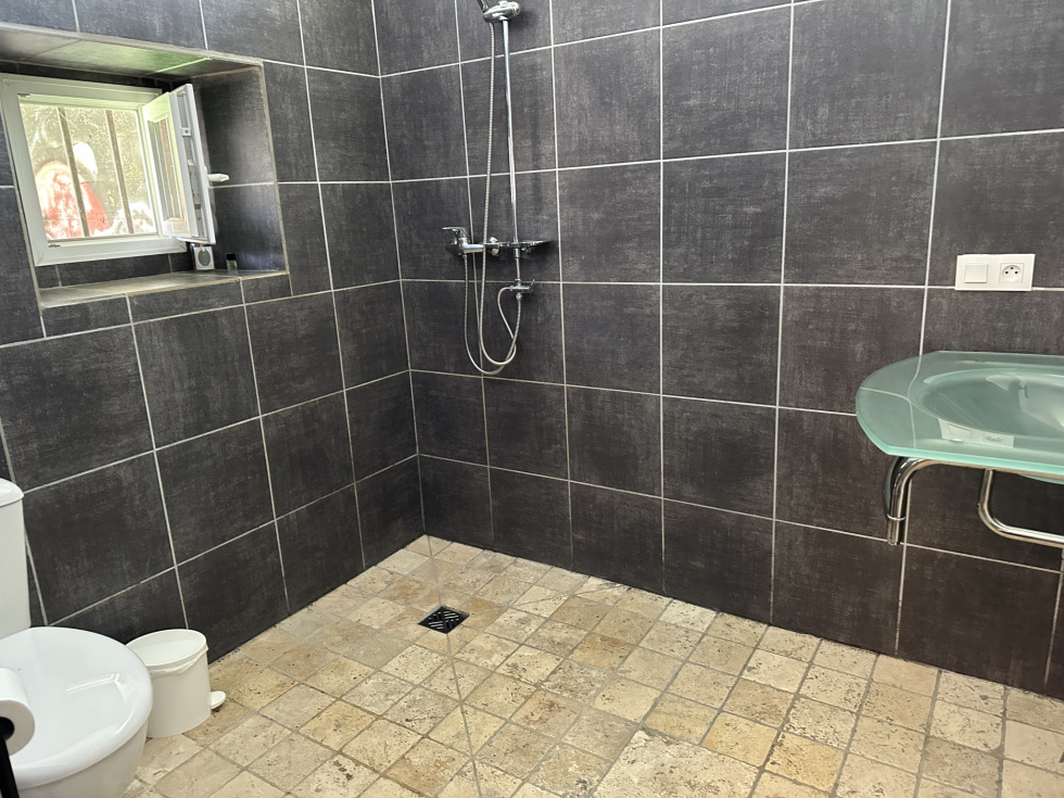 Sur une dépendance se trouve au rez de chaussé un espace salon de 15,5 m², une chambre de 9,41 m² avec salle de bain et wc.