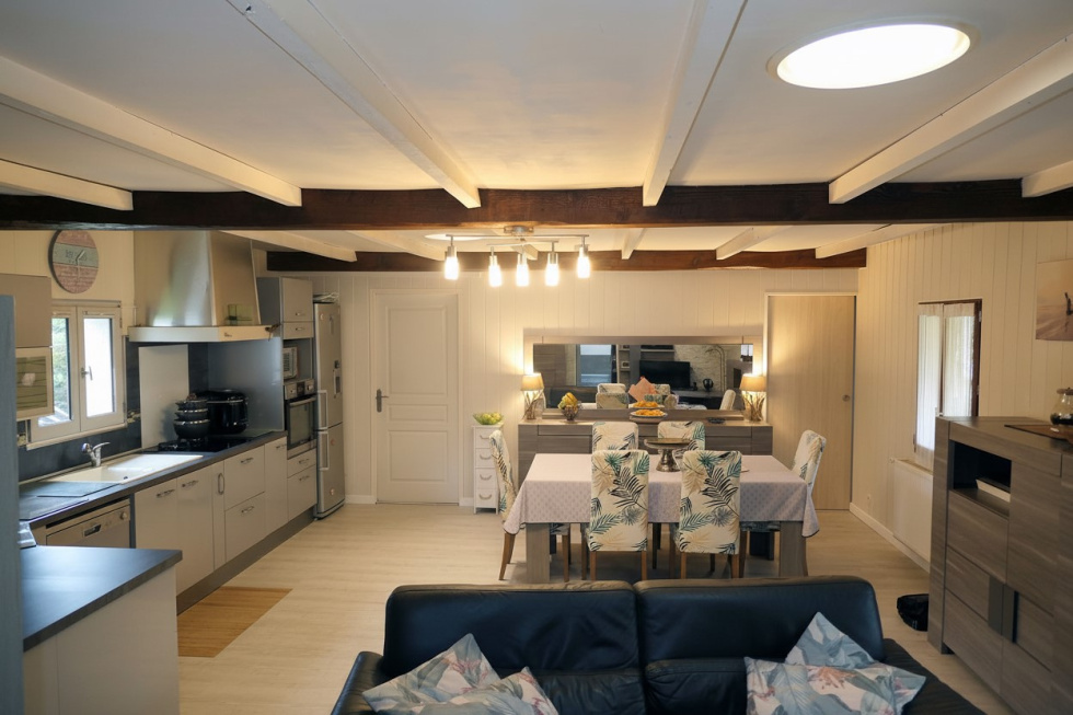 Cette maison de plain-pied, composé d’un séjour de 38 m² sur cuisine ouverte tout équipée avec 2 chambres sur un terrain clôturé de 642 m²