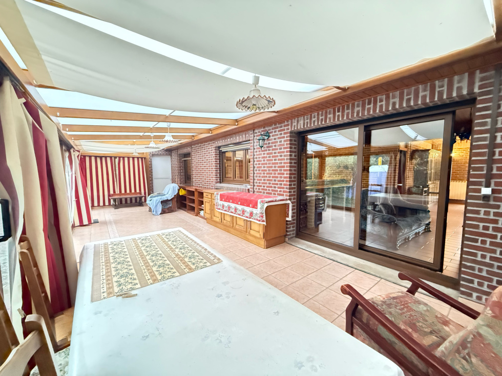 NOUVEAUTE 3%.COM, Bérangère BRACKENIER, vous propose au calme et en retrait de rue, cet ensemble immobilier, constitutif d'un bien rare Sur un total de 8177 m², se trouve une jolie maison individuelle de plain pied offrant environ 95 m² habitables Grande pièce de vie ouverte avec cheminée de feu de bois Véranda de 38 m² (en plus de la surface habitable) 2 grandes chambres 1 salle de bain avec baignoire et douche 1 WC séparé 1 grande cave saine 2 garages de 30 et 40 m²! Ceux ci peut être aménagés en surface habitable supplémentaire OU peuvent t être également détachés de la maison pour créer une surface professionnelle Les combles font toute la maison Un 3e grand garage de 70 m² se trouve face à la maison, à l'exterieur L'ensemble des terrains peut faire le bonheur de propriétaires de chevaux ou autres OU intéresser les amateurs de vergers ou potager Si vous cherchez votre habitation nichée au coeur d'un grand coin de verdure, cette habitation est faite pour vous. Cet ensemble immobilier est idéal également pour un artisan Pour une visite, contactez Bérangère BRACKENIER, agent commercial 3%.COM, RSAC LILLE 2011 AC 00093