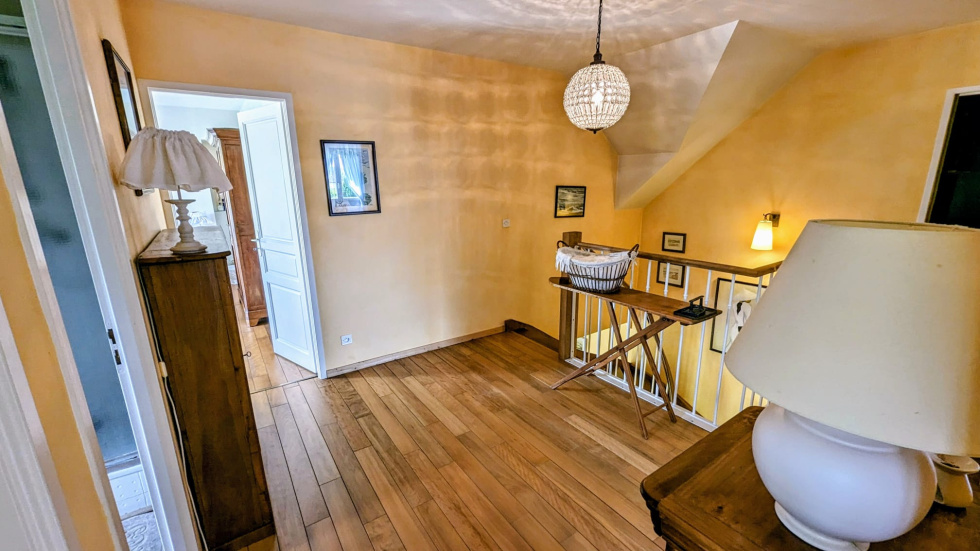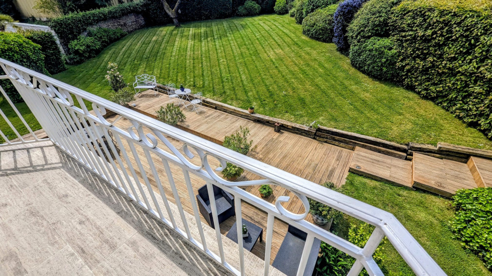 Poissy – Bèthemont / Golf – Maison d’Architecte 209 m² de plancher – Terrain 860 m² – Matériaux Haut de Gamme – Home Cinéma – Extension possible 3% Prestige Poissy Immobilier vous propose en exclusivité cette maison familiale d’architecte, rare par son style, ses matériaux nobles, et son emplacement à 400 m du Golf de Bèthemont, au calme absolu. Édifiée en 2002 sur une parcelle arborée de 860 m², cette propriété de 209 m² habitables, sans vis-à-vis, offre une qualité de vie unique et des prestations de haut standing, dans un environnement résidentiel à proximité immédiate des commodités. Les atouts clés DPE performant (A/C) Parquet en citronnier du Brésil sur les deux niveaux Terrasse en bois exotique Timborana de 50 m² Home cinéma équipé, 6 fauteuils pro Possibilité d’extension de 30 m² au RDC Terrain piscinable et partiellement constructible (400 m²) Garage double US 48 m² avec portail motorisé enterré Accès rapide Paris (A13), commerces, bus et écoles (Notre-Dame de Poissy) Agencement intérieur – 7 pièces principales: Rez-de-chaussée Entrée élégante avec carreaux de ciment Carocim - Salon/Salle à manger de 47 m² en parquet massif exposé Sud-Ouest, très lumineux grâce à ses deux bow-windows et cheminée signée Cuisine indépendante équipée et meublée Bureau, WC séparé, buanderie Accès direct au garage double (48 m²), cave à vin Étage – accessible par un escalier XIXe installé et rénové par les Compagnons du Devoir Palier distribuant 3 chambres avec placards Suite parentale avec dressing et salle de bains privative (baignoire en fonte modèle Joséphine) Salle de home cinéma 18 m², équipée Denon/Yamaha, 6 fauteuils cinéma Pièce d’eau complémentaire à aménager Prestations & Matériaux Construction en briques creuses MurBric Sturm Menuiseries intérieures en bois exotique Volets roulants centralisés Somfy Carrelage Fratantoni (Sicile) Fenêtres double vitrage oscillo-battantes Volets battants aluminium Lucarnes Outeau Chauffage et eau chaude performants Environnement & Accessibilité À 400 m du Golf de Bèthemont À 5 min en voiture : Carrefour, Fnac, Décathlon, autres commerces Bus ligne 55/34 à 2 min à pied (écoles Notre-Dame, centre-ville, gare) Centre-ville et gare de Poissy à 10 min Paris à 20 min via A13 Une maison exceptionnelle, pensée pour les amoureux de matériaux nobles et d’espaces lumineux. Rareté, sérénité, potentiel sont au rendez-vous.