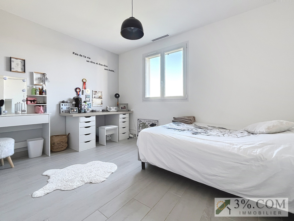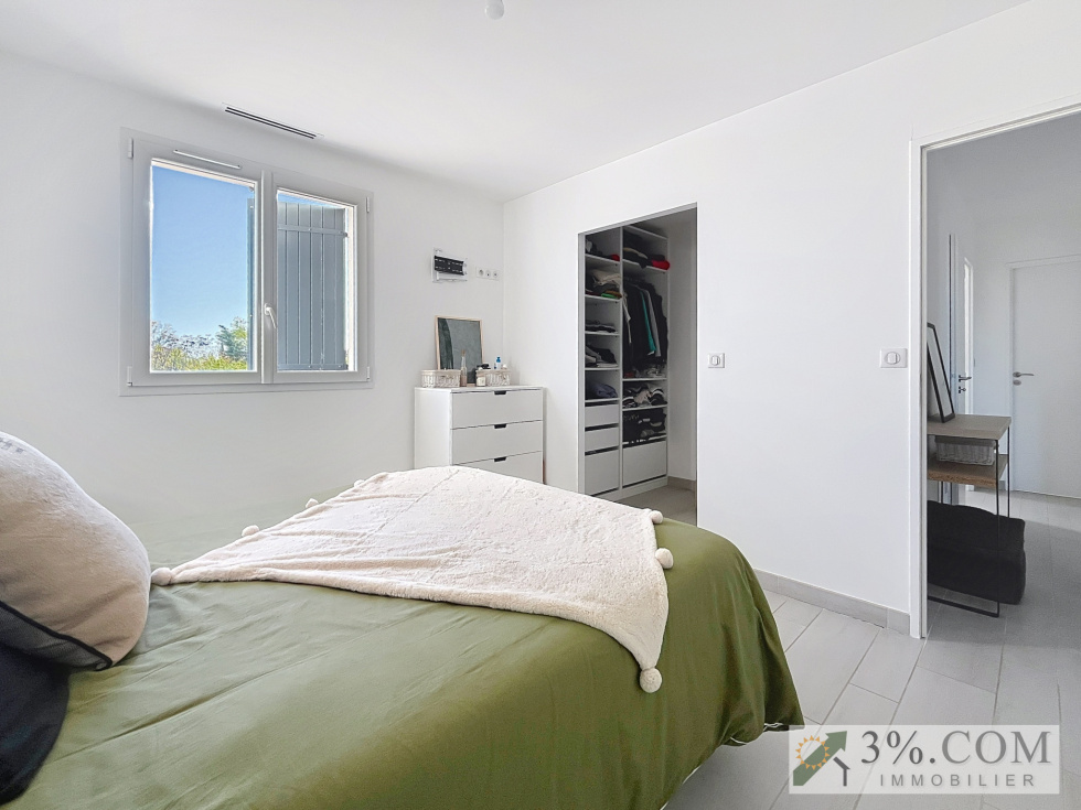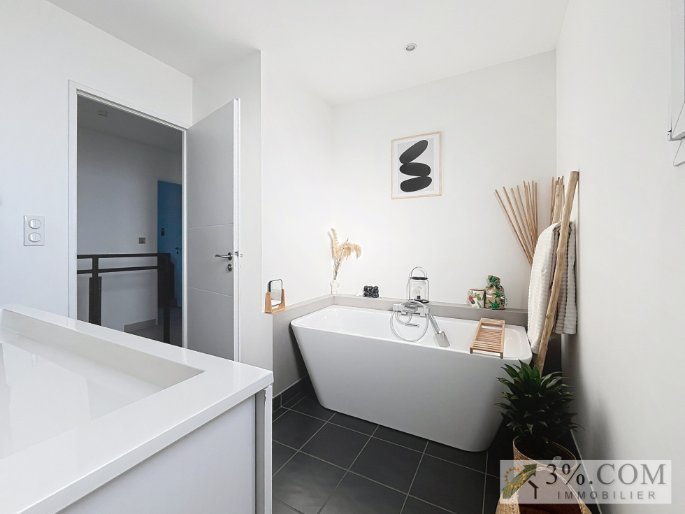 Située dans un secteur résidentiel, cette élégante villa contemporaine développe une surface habitable d'environ 150m² sur une parcelle paysagée et entièrement clôturée de 800m².