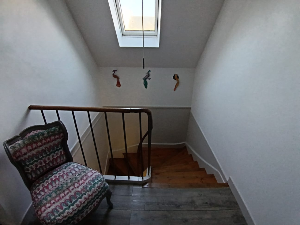 Après quelques marches, vous accédez au rez-de-chaussée qui distribue une belle pièce de vie avec cuisine A/E d'environ 52m2 avec insert à bois, une chambre avec dressing, une salle d'eau, un WC et un espace buanderie.