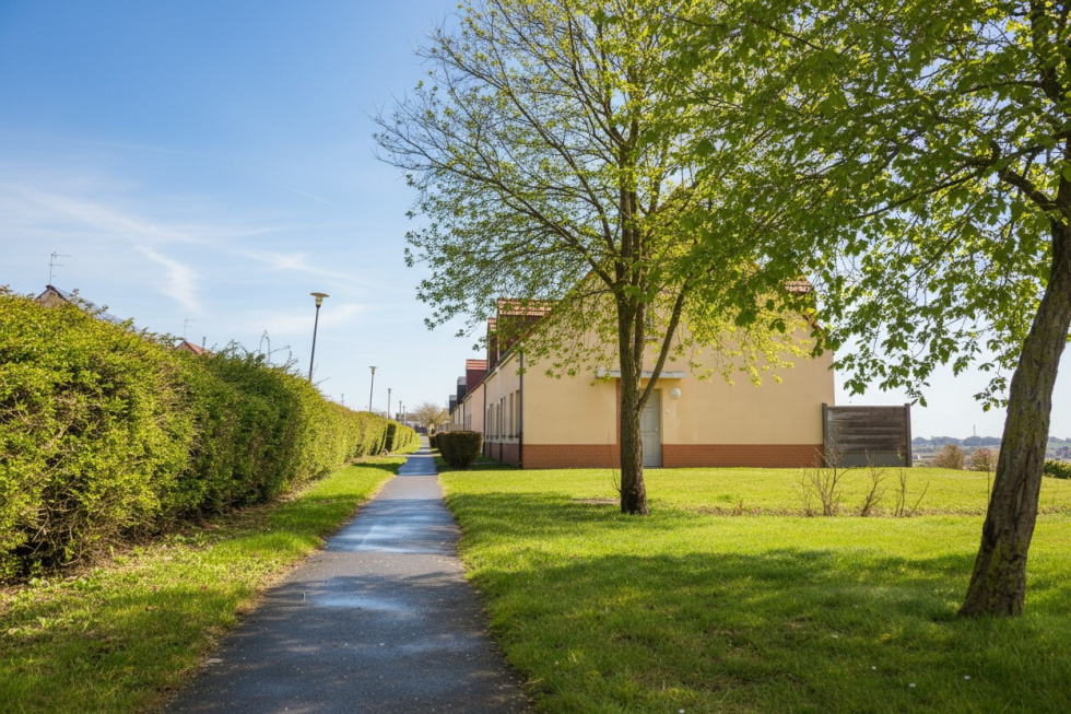 62 m² hab. _ 3 pièces principales _ 2 chambres _ terrain clos de 100 m² _ Séjour orienté Nord/Est