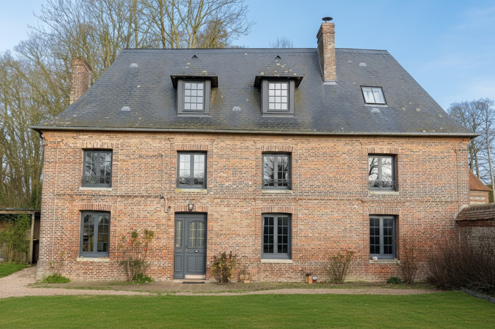 3%.COM, vous présente, cet ancien presbytère en brique datant de 1850. Il présente une haute toiture à la française couverte d'ardoises. Rénové tout en gardant une authenticité et en respectant les anciens matériaux, chargé d’histoire, l’endroit est calme et paisible.