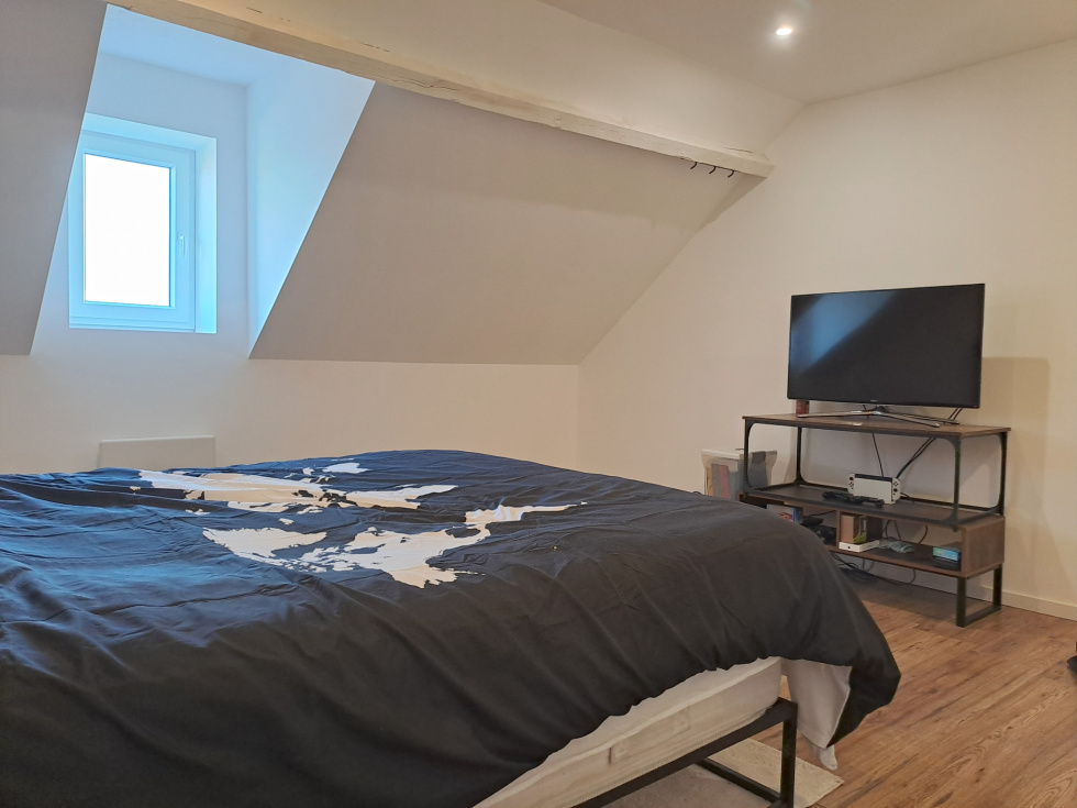 Au second les combles déjà aménagés et isolés pouvent acceuillir une troisième chambre, un bureau ou une salle de détente.