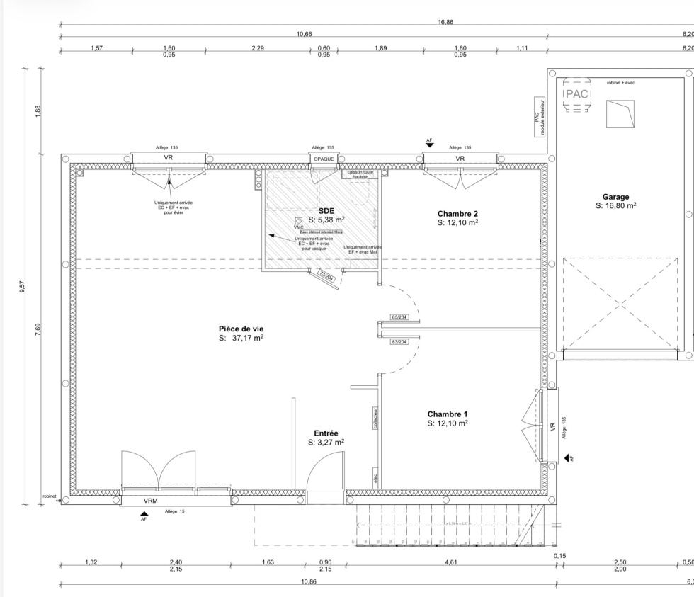 - Garage (16,80m2) avec porte motorisée