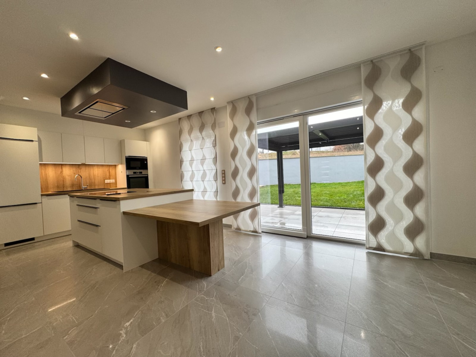 3%COM EXCLUSIVITE à SAVERNE - Coup de coeur pour cette maison mitoyenne de 2022 en excellent état de 90m2 avec 2 chambres et une belle pièce à vivre ouverte sur la cuisine et jardin. - Située dans un quartier récent et residentiel - Datant de 2022 elle est très bien entretenue et vous serez charmés par son agencement et ses volumes!! -- Vous recherchez un logement moderne sans travaux pour y poser vos valises, au calme et lumineux, dans une commune dynamique, alors n'hésitez pas et venez visiter cet maison . Composition: -- 1 entrée avec espace de rangement / dressing / cellier -- 1 bel espace à vivre donnant sur terrasse (34m2) - La cuisine est entièrement équipée et aménagée (îlot, micro onde, lave vaisselle, plaque, hotte, four, réfrigérateur...) -- 1 terrasse / jardin aménagé orientée sud- ouest -- 1 toilette séparé avec lave main -- Accès garage - porte motorisée (16,89m2) À l'étage : -- espace ouvert pour bureau (8,33m2) -- 2 chambres (12,73m2 et 14,37 m2) -- Un très belle salle d'eau avec douche italienne (8,58m2) Extérieur: - Une jolie terrasse avec pergolas - Un jardin soigné et aménagé ( tondeuse robot en place ) - porte accés du jardin à la rue --Garage avec porte motorisée --- Autres informations : -- Motorisation de l'ensemble des volets -- Fenêtres en double vitrage PVC -- Chauffage au sol sur les 2 niveaux -- Chauffage au gaz de ville et ballon thermodynamique De Dietrich --Climatisation dans une chambre -- Garantie décennale en cours -- Très bonne isolation --DPE: B; GES : B Les +++: bel agencement - aucun travaux -rue au calme - --- Contactez Laura ROTH au 07 70 13 31 52 du lundi au samedi de 9h00 à 19h00. Agent salarié en Immobilier, inscrite à la CCI Strasbourg n°ADC 6701 2021 000 002 469 -- Agence Immobilière 3%COM ROTH IMMOBILIER Sarl, RCS 803 863 638. Agence et vitrines à Hochfelden, siège à Gimbrett-Kochersberg. -- Réseau national à honoraires réduits: 3% TTC.