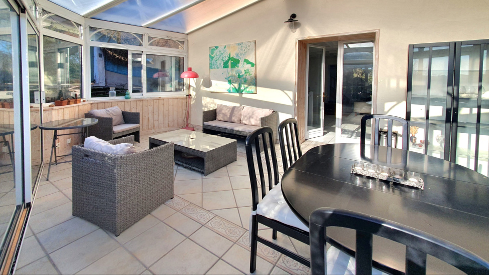 Une magnifique piscine intérieure ou non en fonction des saisons ( grande véranda avec chauffage électrique possible )
