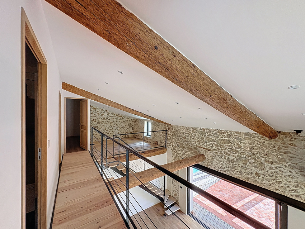 Contact: Audrey Fernandez 06.43.29.30.54 Située au centre du charmant village de Marcorignan, à seulement quelques minutes de Narbonne et des commerces, cette ancienne cave entièrement rénovée dans un esprit loft saura vous séduire par son caractère unique et son alliance réussie entre authenticité et modernité. Caractéristiques principales : Superficie habitable : 145,7 m² Terrain : 196 m² Orientation : Sud-Est, très lumineux Matériaux de qualité : pierre, bois, poutres apparentes Atmosphère chaleureuse et apaisante Extérieur & confort : Espace extérieur entouré d'arbres d'environ 80 m², sans vis-à-visPiscine neuve (4 x 2,5 m) avec traitement par électrolyse, pompe à chaleur et système automatiséLocal technique + accès voiture Stationnement à l'intérieur ou à l'extérieur Climatisation réversible, poêle à granulés, chauffe-eau thermodynamiqueEnvironnement calme et zone non inondableStationnement facile : un nouveau parking de 25 places à 50 m, idéal pour vos amis Disposition intérieure : Rez-de-chaussée : Hall d'entrée de 4.8 m² avec placard de 0.5 m² et WC de 1 m² Double séjour cathédrale lumineux avec larges baies vitrées à galandage s'ouvrant entièrement sur l'extérieurSéjour & coin TV: 29.6 m²+ 14.6 m² Cuisine semi-ouverte de 11.4 m², aménagée et entièrement équipée, donnant sur la pièce de vie Suite parentale avec chambre, salle d'eau de 5.3 m² et grand dressing de 4.5 m² A l'étage : Deux chambres de 11.2 et 9 m² avec placard de 1.5 m² Salle d'eau de 5.8 m² avec douche et WC Grands placards de 1.5 m² et 1.3 m² Buanderie de 2.8 m² Deux mezzanines aménageables de 12.2 m² et 10.3 m²+1.9 m² (chambre supplémentaire, espace bureau ou salle de musique ou de jeux) Coursive à encorbellement donnant du cachet à l'ensemble DPE : Classe B / GES : Classe A Estimation des coûts annuels d'énergie: entre 650 € et 940 €/an Taxe foncière: env. 900 €/an Ce bien atypique et gracieux, magnifiquement rénové, offre un cadre de vie paisible, lumineux et chaleureux. Idéal pour une maison principale ou secondaire, accueillir famille et amis dans une ambiance conviviale ou pour un investissement locatif. Une maison rare sur le secteur, à découvrir sans tarder ! Contact: Audrey Fernandez 06.43.29.30.54 Agent Commercial RSAC 985307842 Contactez-moi pour plus d'informations et organiser une visite !