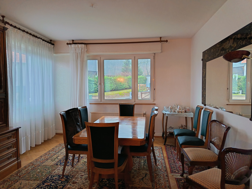 Votre conseiller immobilier 3%.com, Olivier Lemaire joignable au 06 61 88 24 44, vous propose au coeur des chemins de randonnée et à proximité immédiate des forêts, un magnifique pavillon de plus de 180 m2, au calme dans un cadre verdoyant à MOLLKIRCH. La maison a été construite en 1969 puis a été rénovée et aggrandie en 2001. Aucun vis à vis sur ce terrain de 16 ares entièrement cloturé et arboré (petit verger notamment). A l'extérieur, le bien bénéficie de deux belles terrasses pour profiter des journées ensoleillées. Le pavillon est composé de 3 niveaux: -au sous sol, on trouve deux garages de 21 et 46m2 avec portes motorisées, plusieurs espaces de rangements, un espace chaufferie et une cave de 10m2. -au rez de chaussée, on trouve une pièce de vie lumineuse de plus de 30m2 avec accès terrasse, une cuisine indépendante et équipée à rafraichir de 13m2, deux chambres, une buanderie, une salle de bains avec douche et balnéo de plus de 7m2 et un wc indépendant. Plusieurs pièces sont dotées d'un parquet en bois massif. -à l'étage, on trouve 3 chambres de + de 9m2 CARREZ, une petite chambre/ bureau de 7.5 m2 CARREZ (la superficie au sol est plus grande), une pièce de 24m2 dont l'usage reste à définir ( suite parentale? / actuellement salon avec cuisine ouverte équipée), une buanderie, une salle de bains avec douche et un wc indépendant. Le gros oeuvre est un parfait état. L'intérieur (sols, murs et plafonds) également. Quelques pièces à rafraichir néanmoins. L'ensemble des prestations permet de maitriser ses dépenses énergétiques avec une chaudière au fioul Buderus récente, une isolation extérieure et des portes et fenêtres en double vitrage (sauf porte d'entrée). Assainissement par tout à l'égout Principales distances: Rosheim 9 km, Obernai 11 km, Molsheim 12 km, Strasbourg 37 km -- La gare de Mollkirch- heiligenberg est située à moins de 3 minutes en voiture. Boulangerie de Mollkirch à 5 minues à pied. - Contactez Olivier LEMAIRE agent commercial en immobilier RSAC Saverne au 06 61 88 24 44 --- 3%.COM IMMOBILIER, réseau national à honoraires réduits: 3% TTC
