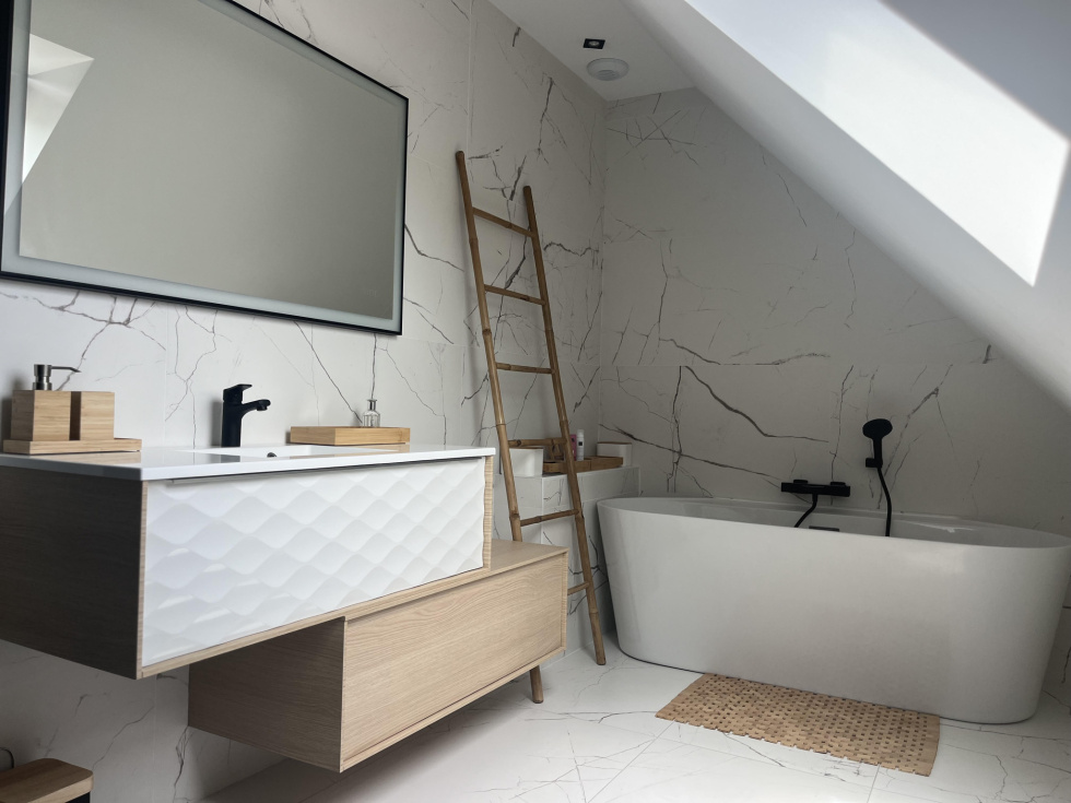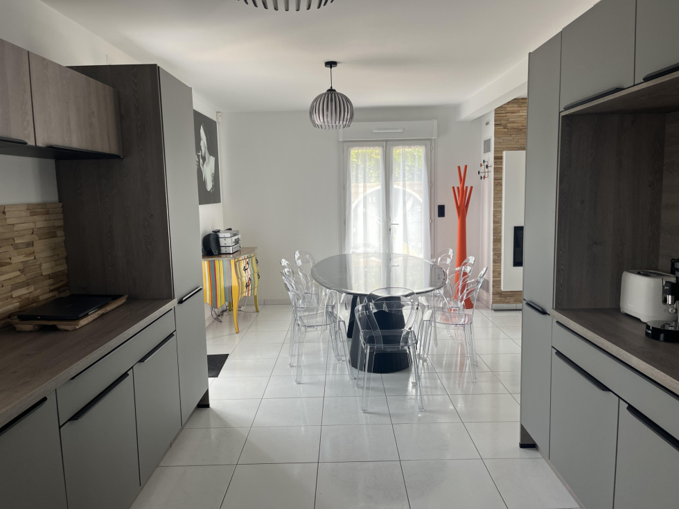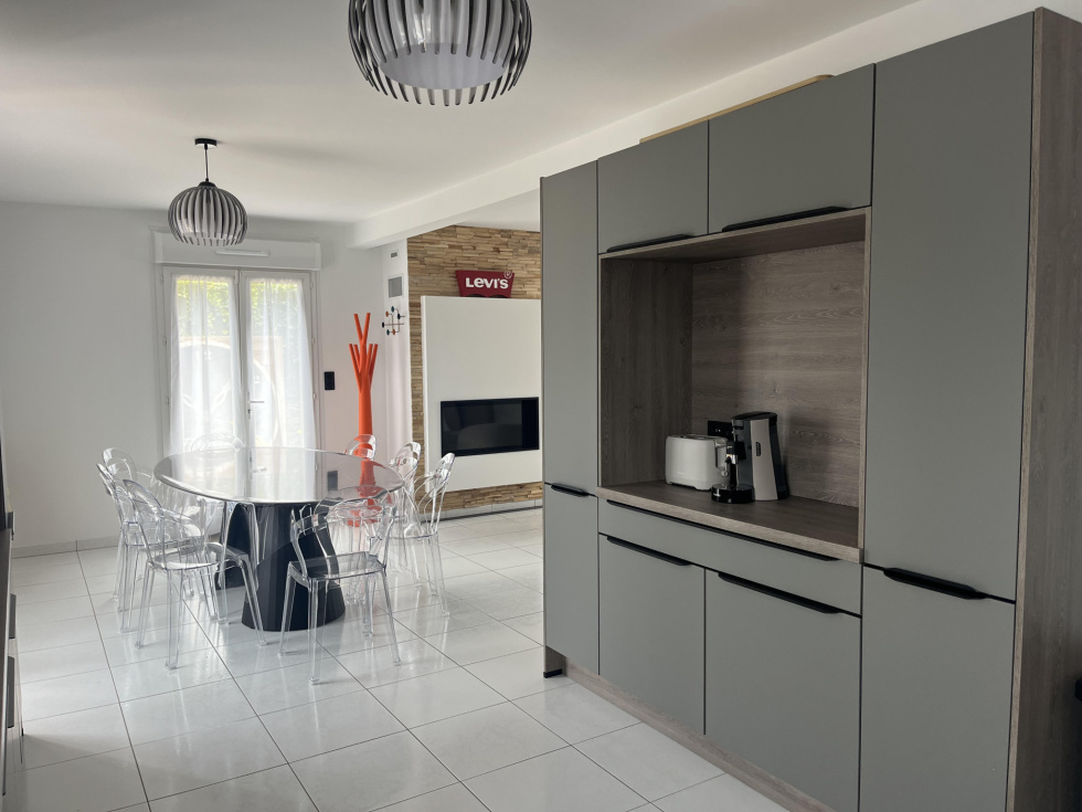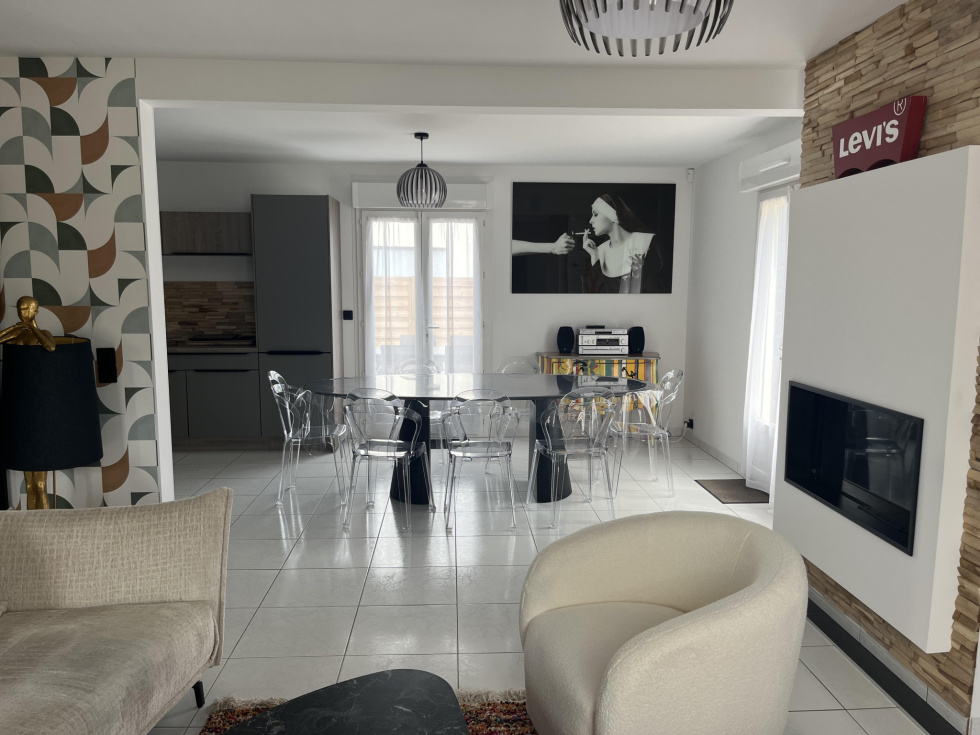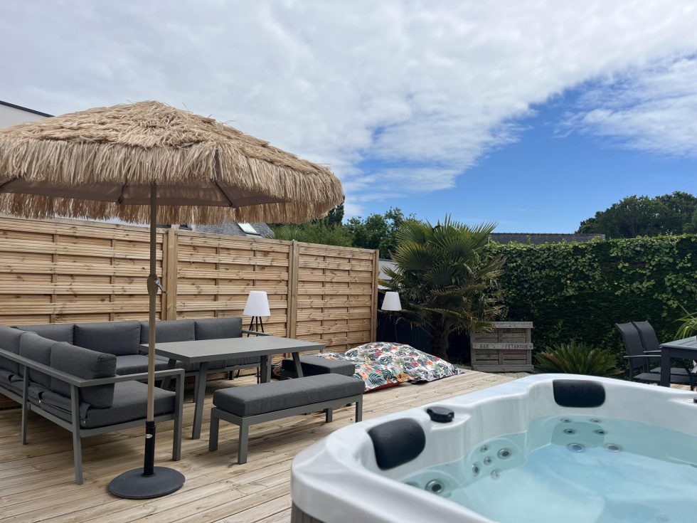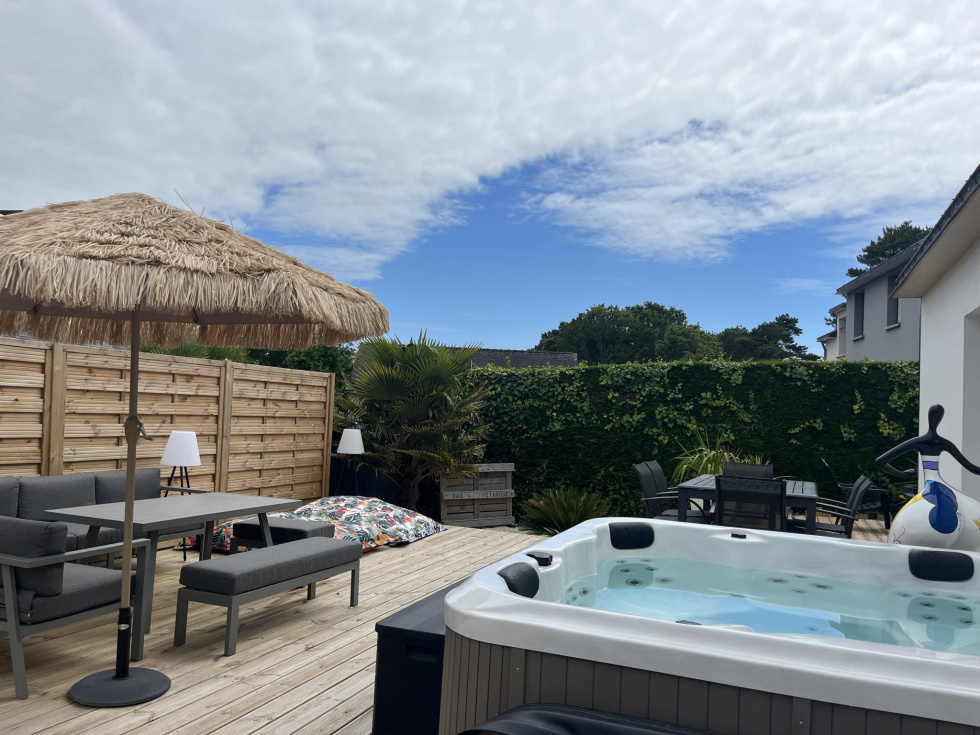 40 photos sur notre site. 400 m du bourg de La Baule Escoublac. Rénovation de 2023. Maison avec un studio indépendant. Maison de 120 m² sur une parcelle de terrain de 672 m² paysager. Au rdc: Un séjour-salon-cuisine aménagée et équipée (four, plaque, hotte, lave vaisselle, frigo et micro ondes) de 46 m² ouvrant sur double terrasse bois de 60 m². Jacuzzi 6 places. Une cheminée avec insert coulissant. (séjour traversant lumineux, portes fenetres et volets électrique) Une chambre de 9.5 m² (dressing aménagé sur la photo). Une salle d'eau (meuble vasque, sèche serviettes, douche et emplacement lave linge). Un wc suspendu indépendant. A l'étage: Une chambre de 11 m² au sol. Une chambre de 14 m² au sol. Une chambre de 10 m² au sol avec dressing à chaussures (salle de sport sur la photo). Une salle de bain de 8,7 m² avec baignoire îlot, meuble vasque et sèche serviettes. Un wc indépendant. Un studio de 15 m² indépendant , comprenant: En rdc : Une pièce à vivre de 12m² (espace nuit/cuisine) sur terrasse couverte de 3.5 m², jardin privatif et clos. Une salle d'eau de 2,8 m² avec wc. Grenier aménageable en chambre. Rendement locatif : 60 euros par nuit. Chauffage électrique. Portail électrique. Oumalou Christophe RSAC / 520 302 852