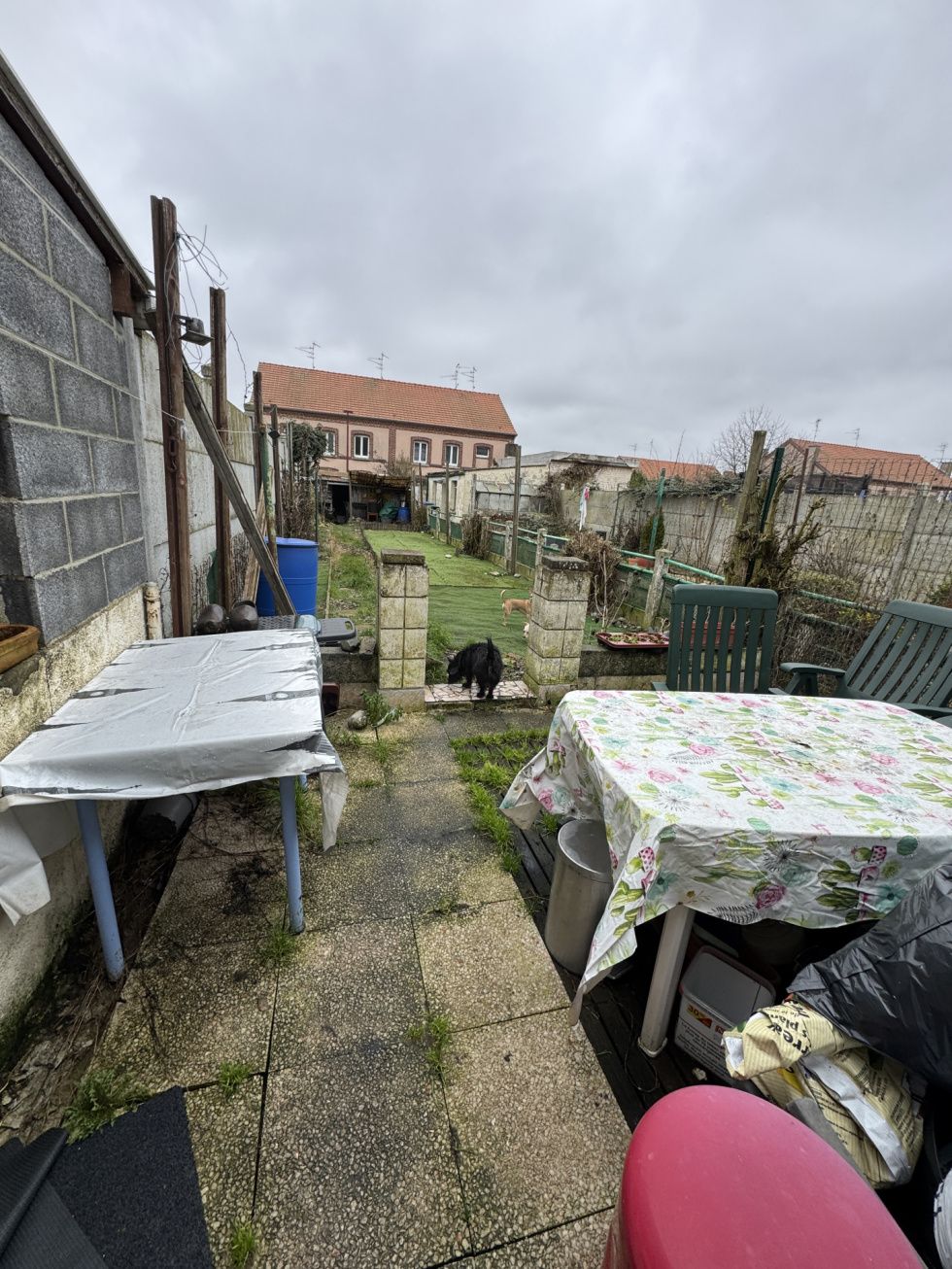 Nouveauté chez 3%.com immobilier, Stéphanie Cussac vous propose cette maison mitoyenne de 106m2 habitables avec 4 chambres sur 2 étages et un jardin de 150m2 Maison idéale pour une 1ére acquisition ou investisseur RDC : -entrée séparée -salon séjour 27 m2 -cuisine séparée de 13m2 -véranda avec salle d’eau et wc Étage 1 : -1 chambres de 16m2 -une chambre de 9m2 Étage 2 : 2 chambres mansardées de 7 ET 8 m2 en carrez Cave Chauffage central gaz chaudière de 2013 Fenêtres en partie PVC double vitrage avec volet DPE E Travaux à prévoir :remise aux normes de l’électricité Honoraires agence à la charge vendeur Pour visiter ou pour plus de renseignement contacter Stéphanie Cussac au 06 58 84 42 46 de 7H30 à 21H00 du lundi au dimanche (RSAC de Valenciennes 848484101)