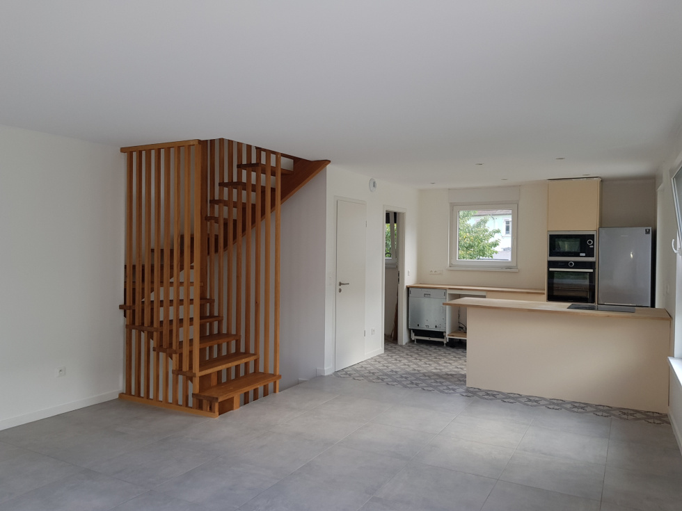 Exclusivité 3%.COM-Neudorf Disponible 1er mai 2026 3%.com - A Strasbourg-Neudorf, maison de144m² en triplex, BBC de 2022 ! --- Vous recherchez à Neudorf une maison triplex avec des prestations de qualités, Cuisine entièrement équipée, dressing aménagé dans la suite parentale. 4 chambres dont une suite parentale, 2 terrasses (30m² et 20m²) 2 patios et espaces verts. Place de parking couverte. Le bien se compose : Rez de chaussée : - Entrée dégagement, 3 chambres,SdB (douche et baignoire), WC. 1er étage : - Séjour, cuisine, cellier, Wc, 2 terrasses. 2ème étage: Suite parentale. Proche de toutes commodités, 100m d'arrêt de Tram Jean Jaurès, en deuxième ligne. ---Autres : -- Charges maîtrisées, chauffage aux pellets, plancher chauffant, ballon d'eau chaude thermodynamique -- Adoussiseur d'eau. -- Volets motorisés. -- Cuve de rétention d'eau de 3000L pour arrosage des terrasses et jardin. -- Chauffage chaudière pellets et ECS ballon thermodynamique. -- RT 2012, ultra économique en terme de facture energétique. -- Loyer hors charges 1990€/mois. -- Avance de charges mensuelles : 150 €/mois (Eau froide, pellets, ramonage, entretien chaudière,entretien des communs, sel adoucisseur d'eau, taxe ordures ménagères) -- Dépôt de garantie : 1990 euros. Honoraires agences à la charge du locataire : 995 euros (dont 150 euros d'état des lieux) Honoraires agences à la charge du bailleur : 995 euros (dont 150 euros d'état des lieux) --- Les plus : -- Bien complet, neuf, avec des prestations de qualité. -- Proximité de toutes commodités. -- Cadre exceptionnel, très lumineux, en deuxième ligne. Contactez, 3%.COM-Neudorf Kleinas Christophe 06 44 02 65 46 ck@troispourcent.com RSAC : Strasbourg 514 019 876