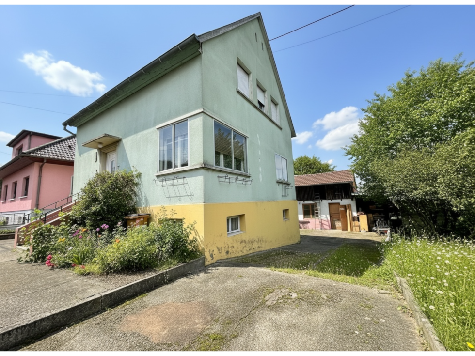 3%.COM NOUVEAUTE en EXCLUSIVITE À HOCHFELDEN venez découvrir cette jolie maison à rénover de 98m2 hab /103 m² au sol avec 3 chambres sur un terrain de 5.64 ares. ---Situation centrale à Hochfelden, proche des commerces et commodités. --- Vous cherchez une maison à rénover avec du potentiel et un bel espace jardin alors n'hésitez pas et venez visiter ce bien! --- Au rez-de-chaussée: - 1 entrée - 1 cuisine ouverte sur séjour (11,10 m² + 11,90 m² : 23 m²) - 1 loggia - 1 salon - salle à manger (25,95 m²) - 1 toilette avec lave main --- Au 1er étage : - 3 chambres : 13,90 m²/9,5 m²/ 8,35 m² (10,10m2 au sol ) - 1 salle de bain avec douche --- Au sous sol (53m2) - Cave, espace buanderie, garage - Accés jardin les+ : situation centrale , beaux volumes, jardin --- Autres informations -- Dépendances - cour - parking -- Chauffage fioul (chaudière 2002) - poele à bois -- Prévoir rafraichissement intérieur et rénovation energétique, isolation, electricité, fenêtres ... -- DPE: F (logement à consommation excessive) -- Pas d'amiante -- A proximité de toutes les commodités + crèche, école maternelle, primaire, collège - Vous trouverez dans la commune, une gare et un accès autoroutier, de nombreuses activités sportives, piscine - petits commerces, boulangeries, boucheries, 3 supermarchés - banques- médecins généralistes et spécialistes ... Principales distances: Truchtersheim: 15min, 14 km. Oberhausbergen: 25 min, 23 km. Schilt. Parc Euro Entrep: 25min, 27 km. Strasbourg-centre: 30 min, 30 km. Saverne: 20 min, 16 km. Brumath: 17min, 12 km --- Le prix de vente inclut nos honoraires agence de 6000 eur TTC (forfait ) ; Prix de vente hors honoraires d'agence : 180 000€; -- Contactez Laura ROTH au 07 70 13 31 52. Agent salarié en Immobilier, inscrite à la CCI Strasbourg n°ADC 6701 2021 000 002 469 Du lundi au samedi de 9h00 à 19h00. -- Agence Immobilière 3%COM ROTH IMMOBILIER Sarl,, RCS 803 863 638. -- Agence et vitrines à Hochfelden, siège à Gimbrett-Kochersberg.