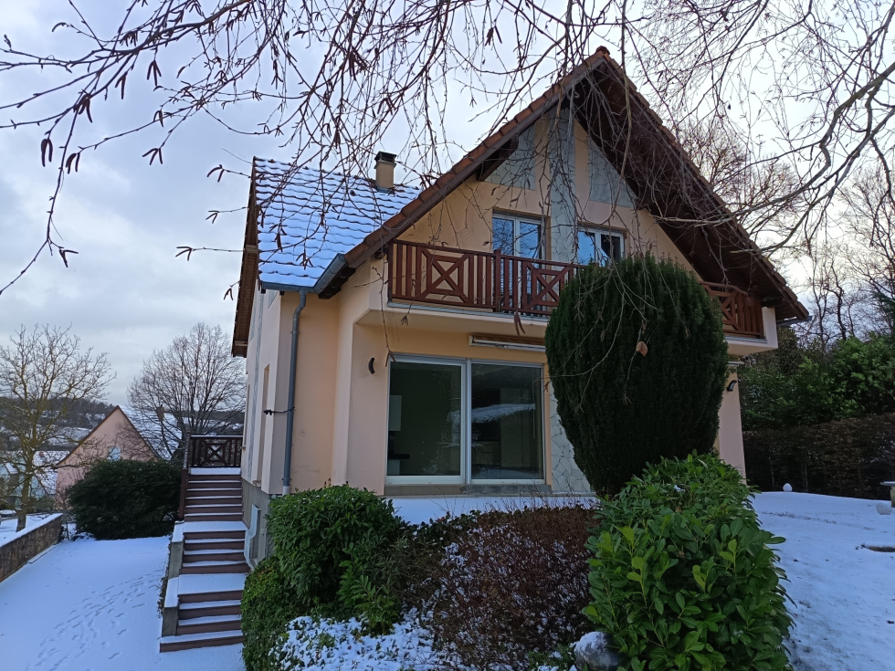 Votre conseiller immobilier 3%.com, Olivier Lemaire joignable au 06 61 88 24 44, vous propose un magnifique pavillon de près de 160 m2, au calme dans un cadre verdoyant dans la commune de ROSENWILLER. Aucun vis à vis sur ce terrain de 9 ares entièrement cloturé et arboré. A l'extérieur, le bien bénéficie de deux belles terrasses pour profiter des journées ensoleillées. Le bien est composée de 3 niveaux: -au sous sol, on trouve un garage 2 véhicules avec porte motorisée, des espaces rangements et une grande pièce de près de 20m2 (avec chauffage électrique et point d'eau) aménagée en bureau avant le départ du propriétaire -au rez de chaussée, on trouve une belle entrée, un wc ainsi qu une vaste et lumineuse pièce de vie de plus de 62m2 avec cuisine ouverte équipée et ilot central. Deux grandes baies vitrées coulissantes permettent d'accèder à une terrasse extérieure abritée par les arbres de la propriété. Une belle cheminée assure une ambiance cosie. La cuisine a été aménagée par un cuisiniste avec des matériaux de qualité. On retrouve sur la cheminée et le plan de travail de la cuisine la même pierre ce qui donne beaucoup d'élégance à la pièce. - à l'étage, on trouve une belle salle de bains de près de 6m2 (baignoire, vasque et wc), une suite parentale avec salle d'eau d'environ 15m2 carrez et deux autres chambres de 11 et 15 m2 (surface au sol plus importantes). Les deux chambres exposées sud communiquent par un joli balcon. Le chauffage est assuré par une cheminée à bois moderne, un chauffage au sol et des convecteurs électiques à inertie. Pas de travaux à prévoir sur le gros oeuvre qui est en parfait état. Des rafraichissements sont cependant à prévoir notamment au niveau des chambres. Les travaux d'entretien de la maison ont été réalisés par des professionnels (factures à l'appui). Portes et fenêtres avec doubles vitrages; serrure 3 points sur la porte d'entrée. La maison est équipée d'une alarme. Isolation et consommation d'énergie tout à fait satisfaisantes avec un bien classé D. Principales distances: Rosheim 4km, Obernai 10 km, Molsheim 11 km, Strasbourg 30 km -- La gare de Rosheim est située à moins de 10 minutes. - Contactez Olivier LEMAIRE agent commercial en immobilier RSAC Saverne au 06 61 88 24 44 --- 3%.COM IMMOBILIER, réseau national à honoraires réduits: 3% TTC