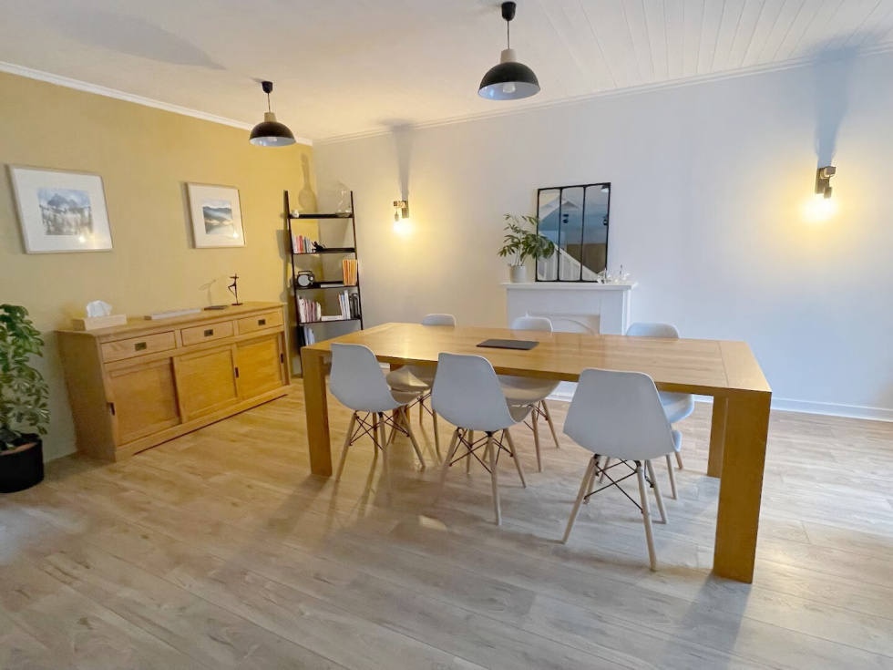 EN EXCLUSIVITÉ – 3%.COM vous propose cette Maison en pierres de charme entièrement rénovée sur une Parcelle + 850 m² Idéalement située en plein cœur d’Erdeven, à pied des commerces et à quelques minutes des plages, cette jolie maison en pierre pleine de caractère séduira les amateurs d’authenticité et de beaux volumes. Elle offre un vaste séjour avec cuisine ouverte, parfait pour les moments de convivialité, ainsi qu’un double salon avec poêle, créant une atmosphère chaleureuse et élégante. La partie nuit comprend 4 chambres, un dressing, ainsi que 2 salles d’eau, idéales pour une vie de famille ou une résidence secondaire confortable. Une buanderie et un garage complètent l’ensemble. Possibilité d'une vie de plain-pied. Implantée sur une belle parcelle de plus de 850 m², elle bénéficie d’un extérieur rare en centre-ville, véritable atout sur le secteur. Les points forts : ? Emplacement recherché ? Charme de la pierre ? Beaux volumes ? Terrain généreux en cœur de bourg ? Proximité plages et commerces Un bien rare à découvrir sans tarder. DPE : C 176 GES : C 27. Estimation des coûts annuels d’énergie du logement, entre 2047 € & 2769 € (moyenne indexée sur 2023) Le prix indiqué comprend les honoraires réduits de 3% à la charge de l'acquéreur. Prix Net Vendeur : 480 000€ Les informations sur les risques auxquels ce bien est exposé, sont disponible sur www.georisque.gouv.fr Contactez votre partenaire immobilier : Jean-Pierre JOSSE : O6 61 63 13 5O Agent immobilier indépendant, RSAC LORIENT : 753 769 843