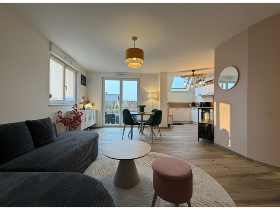 3%.COM - EXCLUSIVITÉ à NORDHEIM - (Rue de Kuttolsheim, en seconde ligne), au centre du village, bel appartement 3 pièces de 75 m² habitables, situé au 1er étage sans ascenseur.— Vous recherchez un logement fonctionnel, sans travaux, aménagé avec goût ? Alors n’hésitez pas et venez visiter cet appartement.— Niché au cœur d’un des villages les plus prisés du Kochersberg, découvrez cet appartement situé dans un environnement calme.Composition :- 1 entrée/dégagement équipée de rangements.- 1 salon/séjour d’environ 26 m² ouvert sur l’espace cuisine de 10 m² avec accès terrasse.- 1 toilette séparée.- 2 belles chambres de 13 m² chacune.- 1 salle d’eau (douche, simple vasque, emplacement machine à laver).— Autres informations :- Lumineux et fonctionnel.- Petite copropriété intimiste, bien tenue.- Bien soumis à la copropriété.- La copropriété est constituée de 5 logements dans le bâtiment concerné / 24 lots.- Ballon électrique pour l’eau chaude 200 L.- Chauffage électrique au sol.- Terrasse d’environ 11 m² équipée d’un store électrique.- Fenêtres double vitrage, volets électriques (chambres et salon).- Fibre dans le logement.- Logement fonctionnel avec de nombreux rangements.- Charges courantes/an de copropriété : 1 236 €/an soit 103 €/mois (assurance du bâtiment, eau froide, électricité des communs, syndic…).- Taxe foncière : 585 €.- DPE : D.- Nordheim séduit par son authenticité alsacienne, son cadre verdoyant entouré de vignobles et sa proximité avec Strasbourg.Le village offre une qualité de vie paisible dans un cadre authentique, avec école, commerces de proximité et vie associative dynamique, tout en permettant un accès rapide aux grands axes.— Principales distances :Strasbourg centre : 21 min, 20 km.Molsheim : 19 min, 14 km.Hochfelden : 22 min, 19 km.Geispolsheim : 30 min, 31 km.Contactez Célia au 07 78 12 20 62.Du lundi au samedi de 9h00 à 19h00.Agent commercial en immobilier, inscrit au RSAC Strasbourg n° 809 126 998.Agence immobilière ROTH IMMOBILIER Sarl, franchisé 3%.COM, RCS 803 863 638.Agence et vitrines à Hochfelden, siège à Gimbrett-Kochersberg.Réseau national à honoraires réduits : 3 % TTC.Annonce proposée par un agent commercial.