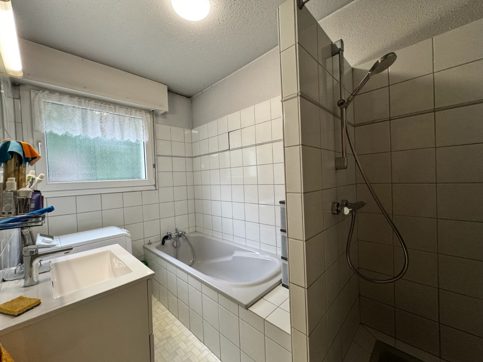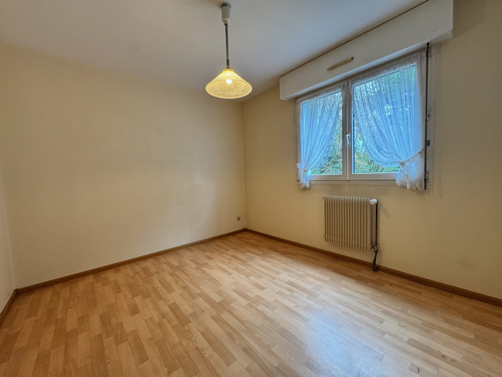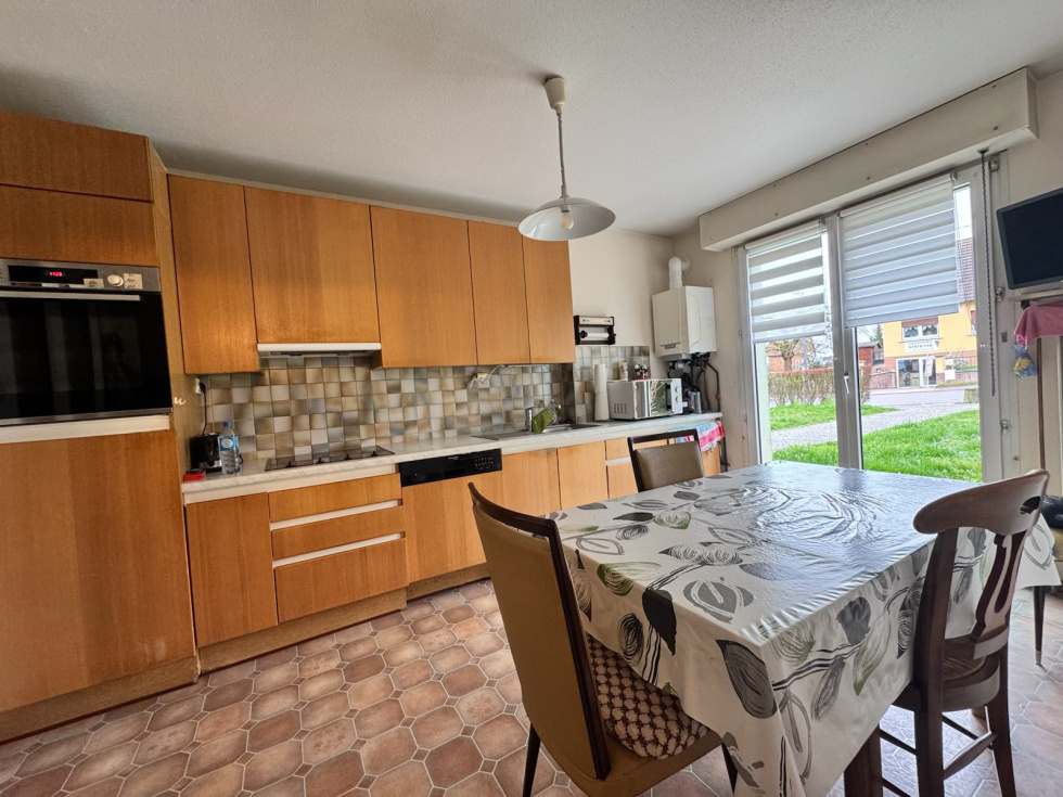 3%.COM en EXCLUSIVITE - Venez découvrir ce grand F3 situé à Hochfelden au RDC d'une petite résidence bien tenue de 1990. -- Un terrasse, une cave et un grand garage complètent ce bien -- Vous recherchez un logement fonctionnel et lumineux dans un environnement apprécié pour sa qualité de vie, alors n'hésitez pas et venez visiter ce bien! Composition: -- 1 entrée avec des placards de rangement (8,15m2) -- 1 salon (30,80m²) ouvert sur la terrasse (5,8m2) -- 1 cuisine aménagée (11,95m²) avec four, plaque de cuisson, hotte -- Chambre 1 (13,5m²) -- Chambre 2 (10,05m²) -- 1 salle de bain avec baignoire ET douche (4,95m²) -- toilette séparé -- Sous sol : cave et garage en enfilade (42,5m²) Informations: - Chauffage individuel au gaz - DPE et GES : D - prévoir rafraichissement - Bien soumis à la copropriété. -- La copropriété est constituée de 14 lots dont 7 logements dans le bâtiment. -- Charges courantes/an de copropriété: 1620 eur/an soit 135eur /mois ( eau, assurance bâtiment,entretien des communs, syndic, ...). LES +++ : beaux volumes et grand garage - environnement résidentiel - - A proximité de toutes les commodités ( crèche, école maternelle, primaire, collège ) - Vous trouverez dans la commune, une gare et un accès autoroutier, de nombreuses activités sportives, piscine - petits commerces, boulangeries, boucheries, 3 supermarchés - banques- médecins généralistes et spécialistes ... Principales distances: Truchtersheim: 15min, 14 km. Oberhausbergen: 25 min, 23 km. Schilt. Parc Euro Entrep: 25min, 27 km. Strasbourg-centre: 30 min, 30 km. Saverne: 20 min, 16 km. Brumath: 17min, 12 km -- Contactez Laura ROTH au 07 70 13 31 52. Agent salarié en Immobilier, inscrite à la CCI Strasbourg n°ADC 6701 2021 000 002 469 Du lundi au samedi de 9h00 à 19h00. -- Agence Immobilière 3%COM ROTH IMMOBILIER Sarl,, RCS 803 863 638. -- Agence et vitrines à Hochfelden, siège à Gimbrett-Kochersberg.
