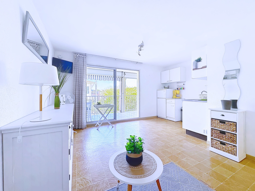 Contact: Audrey Fernandez 06.43.29.30.54 Situé Rive Droite, entre le village et le port de Gruissan, ce studio lumineux de 20 m² vendu meublé, offre un cadre idéal pour profiter pleinement de la vie en bord de mer. Niché au 1er étage d'une résidence calme et sécurisée (immeuble de trois étages construit en 1983), il séduit par sa luminosité et sa belle terrasse exposée Ouest de 8.5 m², parfaite pour vos moments de détente ou vos repas en plein air. Description du bien Surface : 19.72 m² Loi Carrez / Surface au sol totale : 28,22 m² Exposition : Ouest Étage : 1er (sur 3) Année de construction : 1983 État général : Bon état L'appartement comprend : Un séjour lumineux de 17.71 m² avec canapé convertible Une salle d'eau de 2.01 m² avec douche et WC intégré Un coin cuisine aménagé et équipé (plaques électriques, réfrigérateur, lave-linge, micro-ondes grill) Terrasse/loggia de 8;5 m² ouverte, équipée de meubles de rangement et d'un espace pour plancha Ballon électrique, menuiseries en simple vitrage Résidence & environnement Résidence fermée et sécurisée Parking extérieur gratuit et arboré devant la résidence Environnement calme et agréable, à proximité de la plage des Chalets Nombre de lots en copropriété : 223 (dont 114 à usage d'habitation) Charges annuelles : 488 € Taxe foncière : 615 € Les atouts Emplacement recherché entre village et port Résidence calme et bien entretenue Grande terrasse conviviale Idéal pour résidence secondaire, investissement locatif ou premier achat Non soumis au DPE (logement sans système de chauffage fixe) Un pied-à-terre parfait à Gruissan, à deux pas de la mer et de toutes les commodités ! Contact: Audrey Fernandez 06.43.29.30.54 Conseillère Immobilier: RSAC 985307842 Contactez-moi pour plus d'informations et organiser une visite !