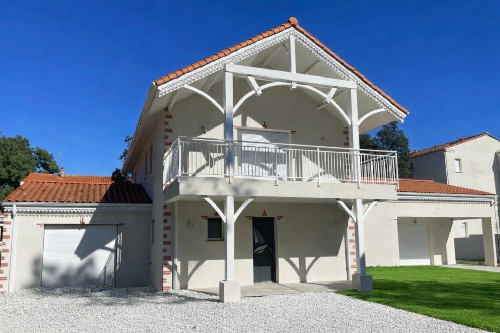 3%.COM présente.... A Royan (17200), face à la plage de la GRANDE CONCHE, dans le quartier très recherché du Parc, en retrait de 60 mètres du boulevard Garnier pour une plus grande tranquilité, nichée sur un terrain piscinable arboré clos de 855 m2 environ, à 600 mètres des commerces du Parc, cette Villa de 2025 inspirée du type balnéaire années 30 orientée SUD OUEST édifiée sur 2 niveaux sous RT 2012 attend son tout premier propriétaire pour donner une âme à son espace lumineux déployé sur 176 m2 habitables chauffés au sol. Vous découvrerez..... en rez de chaussée, entrée avec placard, toilettes avec lave mains, cellier/buanderie, salle à manger et cuisine à aménager et à équiper, salon ouvrant sur une terrasse de 39 m2 orientée sud ouest, suite parentale (avec salle d'eau privative, toilettes et dressing) ouvrant sur un patio de 18 m2. A l'étage, 2 chambres avec placard, salle de bains double vasque, wc indépendant, dégagement, espace palier/bureau ouvrant sur un balcon de 15.41 m2 avec VUE MER. Garage de 30 m2 avec porte sectionnelle électrique. Travaux de finition en cours. PRODUIT RARE SUR LE SECTEUR.