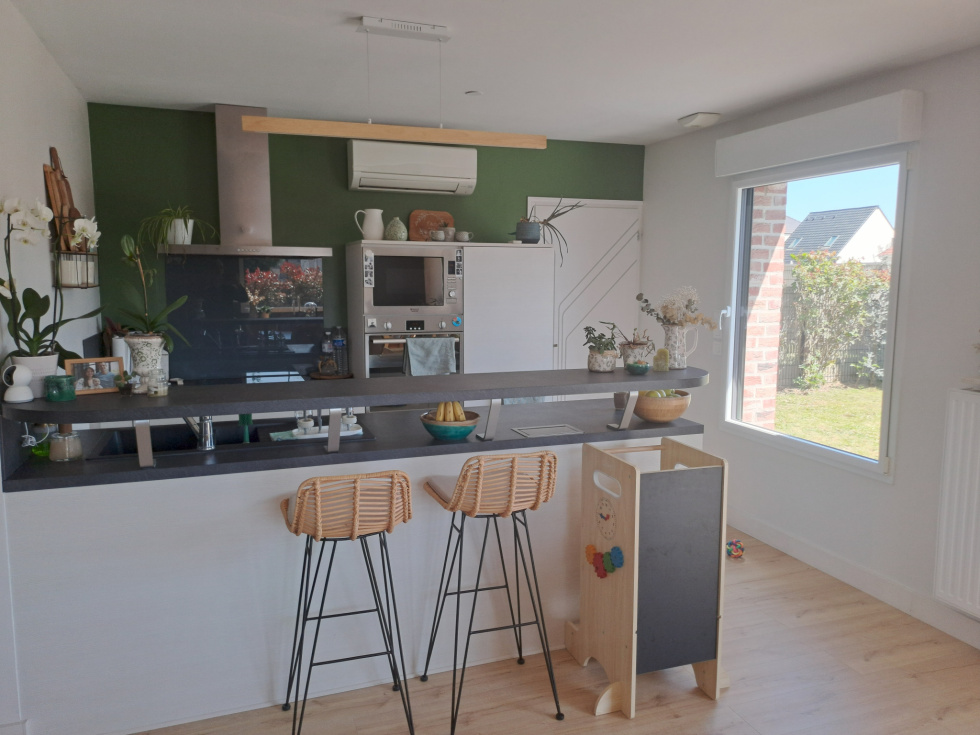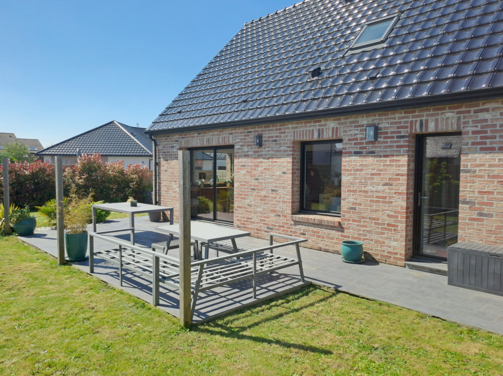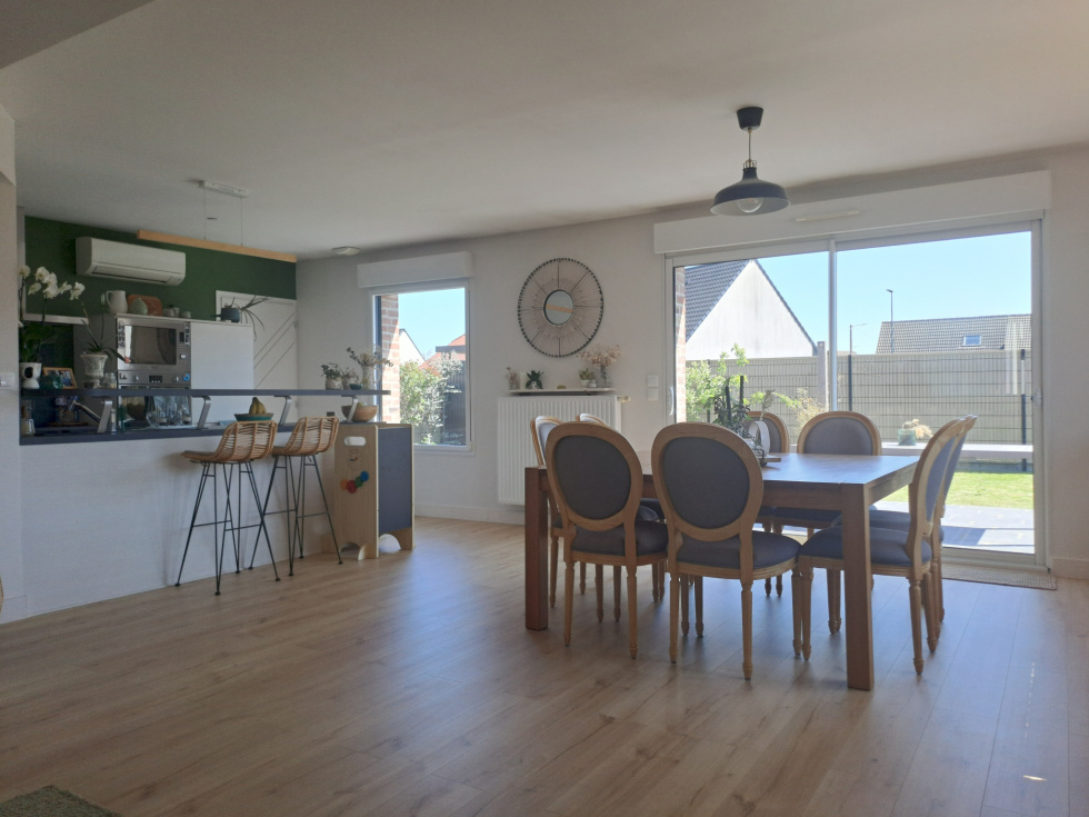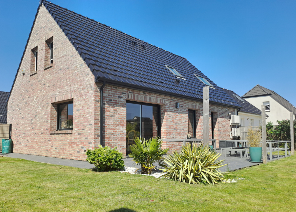 À découvrir en exclusivité avec votre conseiller Nicolas Dumez 3%.COM Immobilier. Superbe maison individuelle en briques (2015) de 103 m² bâtie sur une parcelle de 418 m² dans un secteur calme et recherché. Au rez-de-chaussée, vous trouverez un hall d'entrée, une vaste pièce de vie lumineuse avec une cuisine équipée ouverte, un grand salon et un séjour avec un accès à la terrasse et au jardin orientés sud. A l'étage, le palier dessert un espace bureautique, une salle de bain (meuble vasques, baignoire, douche italienne) et 3 belles chambres dont une avec dressing. Une buanderie, un grand garage, deux places de stationnement et un abri de jardin viennent également compléter ce bien. Cette construction saura vous séduire par son confort et la qualité de ses prestations (entrée macadamisée avec portail électrique, tout à l'égout, fibre optique, menuiseries en aluminium avec volets électriques, chaudière gaz De Dietrich (neuve), pompe à chaleur air/air, VMC, cuve de récupération des eaux de pluie alimentant la maison, système de domotique). AUCUNS Travaux à prévoir, ON POSE LES MEUBLES!!! Contactez Nicolas DUMEZ, agent commercial en immobilier. Rsac Arras 983369208 au 06/02/56/62/11 pour réserver une visite !!! Vous pouvez également retrouver ce bien sur ma page facebook 'Nicolas Dumez 3%.COM Immobilier' A DECOUVRIR RAPIDEMENT !!!
