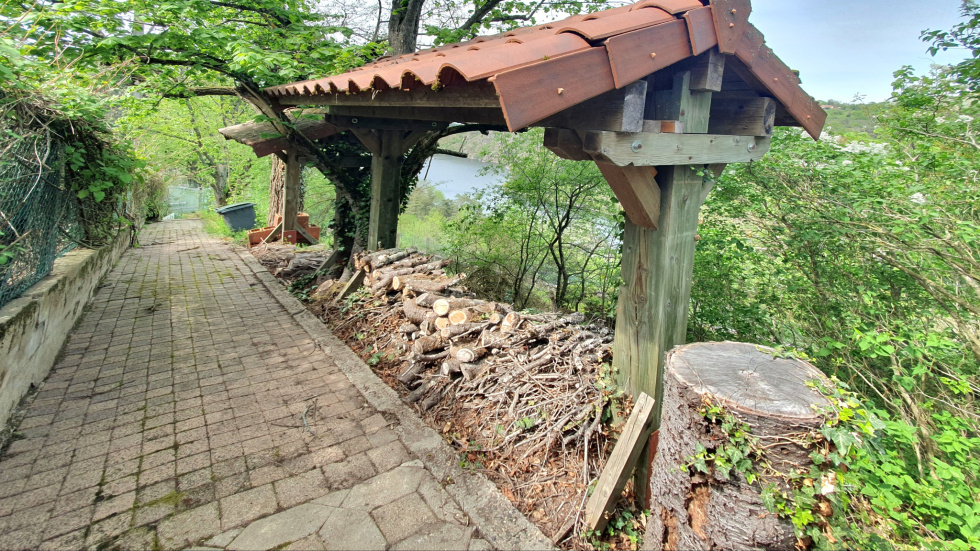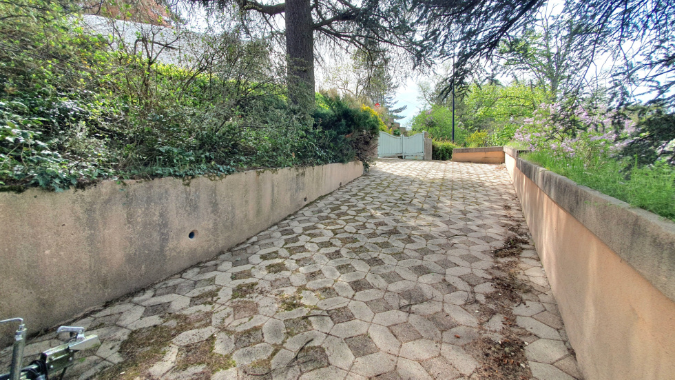 Un terrain de 1244m2 équipé d'une jolie piscine Desjoyaux 7x4 doté d'un abri piscine, nichée dans une des grandes terrasses avec vue sur le lac .