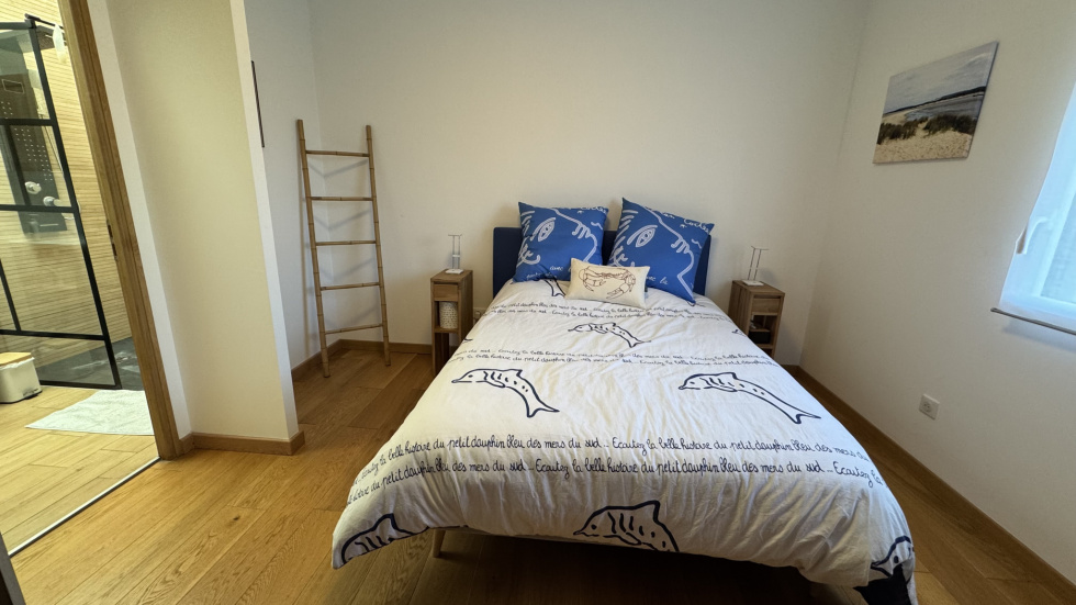 Marie-Eve SUPPLISSON vous présente encore un bien d'exception avec cette maison haut de gamme proche Wissant, les deux Caps, ... Choisir d'être bien sur la Côte d'opale! Maison entièrement rénovée, considérée comme neuve en 2018, garantie décennale. À 9 minutes de la plage en voiture, proche du Cap Blanc nez pour les randonnées, à 5 minutes de la gare TGV Calais Fréthun direction Lille, Bruxelles, Londres. À 200 km précisément de Bruxelles, 2h15 en voiture. 125 m² habitables baignés de lumière: un bijou. - Trois chambres dont une chambre au rez-de-chaussée avec sa salle de douche. - Salle de bain WC à l’étage avec baignoire balnéo. - Magnifique séjour très lumineux, parquet chêne, poêle à bois moderne, baies vitrées agréables plein sud. - Cuisine ouverte Déco Cuisine : Electroménager haut de gamme dont un Four à vapeur et un four combiné, un grand réfrigérateur/congélateur, etc... Plan de travail et crédence en Dekton: Pierre synthétique haut de gamme quasi-indestructible résistance totale à la chaleur. - Buanderie - Jardinet ou terrasse / Garage - Façade en excellent état - DPE C / GES A Poêle à bois moderne dans le séjour. Plancher chauffant en parfait, état de fonctionnement, avec répartition de la chaleur, uniformément sur toute la maison au rez-de-chaussée. A l'étage: Radiateurs électriques à inertie (modélisé comme un radiateur NFC, NF** et NF***) avec programmateur piècepar pièce (système individuel). Venez visiter, vous ne serez pas déçus! Faire vite! Pour une visite, contactez Marie-Eve SUPPLISSON, agent commercial 3%.COM, RSAC 919 620 849 Boulogne-sur-Mer au 07 88 70 86 64 ou marieevesupplisson@gmail.com Marie-Eve SUPPLISSON presents another exceptional property with this high-end house near Wissant, Les Deux Caps on the Opal Coast. The house has been completely renovated, considered as new in 2018, with a ten-year warranty. Nine minutes from the beach by car, close to Cap Blanc Nez for hiking, five minutes from the Calais Fréthun TGV station for trains to Lille, Brussels, and London. Precisely 200 km from Brussels, 2 hours and 15 minutes by car. 125 m² of light-filled living space. Three bedrooms, including one on the ground floor with its own shower room. Bathroom with toilet upstairs with whirlpool bath. Magnificent, very bright living room with oak parquet flooring, modern wood-burning stove, and pleasant south-facing bay windows. Open-plan kitchen with high-end appliances including a steam oven and a combination oven, a large refrigerator/freezer, etc. Dekton worktop and splashback: high-end synthetic stone, virtually indestructible and completely heat-resistant. Laundry room Small garden or terrace / Garage Facade in excellent condition DPE C / GES A Modern wood-burning stove in the living room. Underfloor heating in perfect working order, with heat distributed evenly throughout the ground floor of the house. Upstairs: Electric inertia radiators (modeled as NFC, NF**, and NF*** radiators) with room-by-room programmers (individual system). Come and visit, you won't be disappointed! Hurry! Marie-Eve SUPPLISSON präsentiert Ihnen mit diesem hochwertigen Haus in der Nähe von Wissant, Les Deux Caps an der Opalküste, erneut eine außergewöhnliche Immobilie. Das Haus wurde 2018 komplett renoviert, gilt als neuwertig und verfügt über eine zehnjährige Garantie. 9 Autominuten vom Strand entfernt, in der Nähe des Cap Blanc Nez für Wanderungen, 5 Minuten vom TGV-Bahnhof Calais Fréthun in Richtung Lille, Brüssel, London. Genau 200 km von Brüssel entfernt, 2 Stunden und 15 Minuten mit dem Auto. 125 m² Wohnfläche, lichtdurchflutet. Drei Schlafzimmer, davon eines im Erdgeschoss mit eigenem Duschbad. Badezimmer mit WC im Obergeschoss mit Whirlpool-Badewanne. Wunderschönes, sehr helles Wohnzimmer, Eichenparkett, moderner Holzofen, schöne Fensterfronten nach Süden. Offene Küche Dekor Küche: Hochwertige Haushaltsgeräte, darunter ein Dampfgarer und ein Kombi-Backofen, ein großer Kühl-/Gefrierschrank usw. Arbeitsplatte und Fliesenspiegel aus Dekton: hochwertiger, nahezu unzerstörbarer Kunststein mit absoluter Hitzebeständigkeit. Waschküche Kleiner Garten oder Terrasse / Garage Fassade in ausgezeichnetem Zustand Energieeffizienzklasse C / Treibhausgasemissionen A Moderner Holzofen im Wohnzimmer. Fußbodenheizung in einwandfreiem Zustand, mit gleichmäßiger Wärmeverteilung im gesamten Erdgeschoss. Im Obergeschoss: Elektrische Speicherheizkörper (modifiziert als NFC-, NF**- und NF***-Heizkörper) mit Raumthermostaten (individuelles System). Kommen Sie vorbei, Sie werden nicht enttäuscht sein! Beeilen Sie sich!