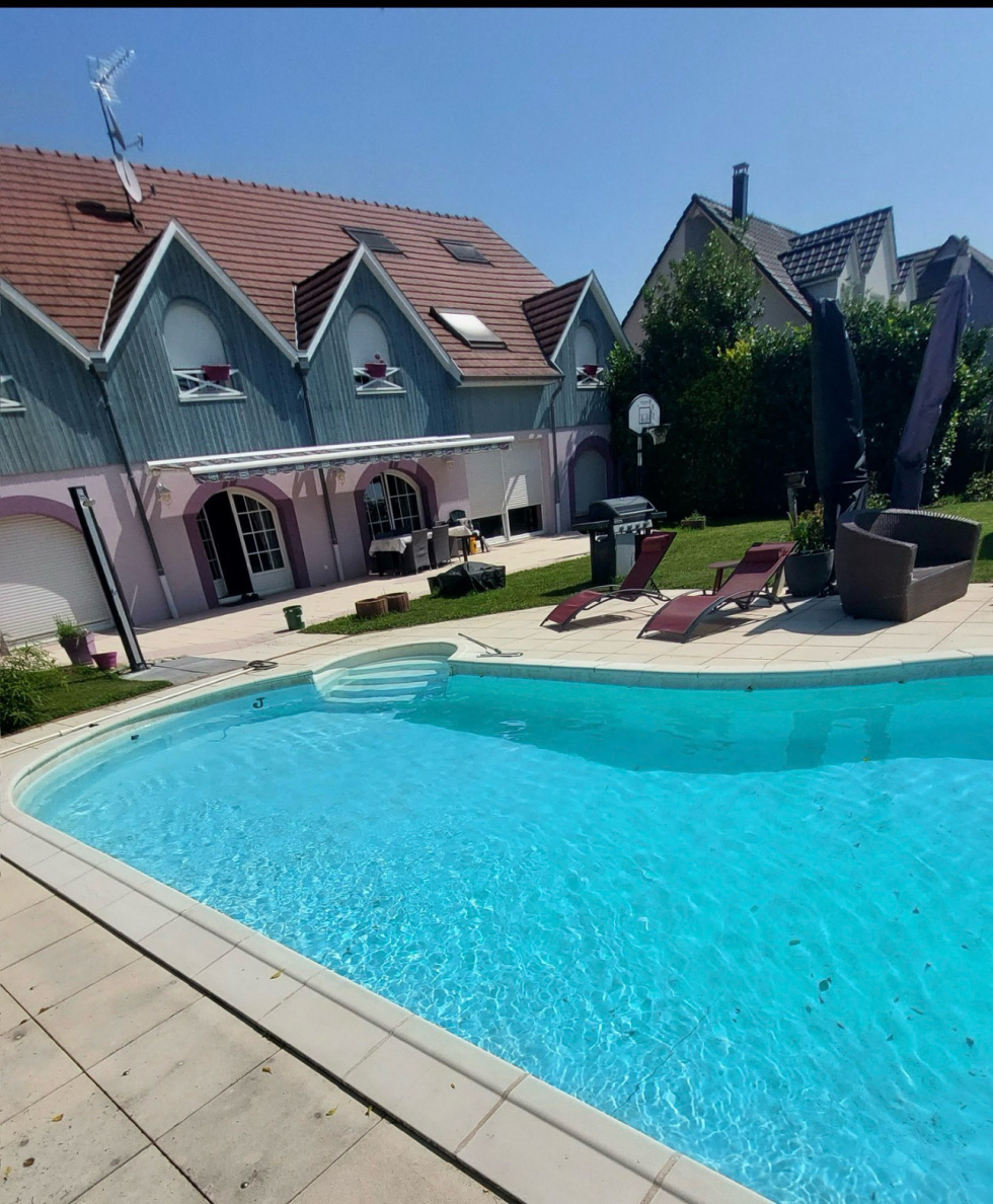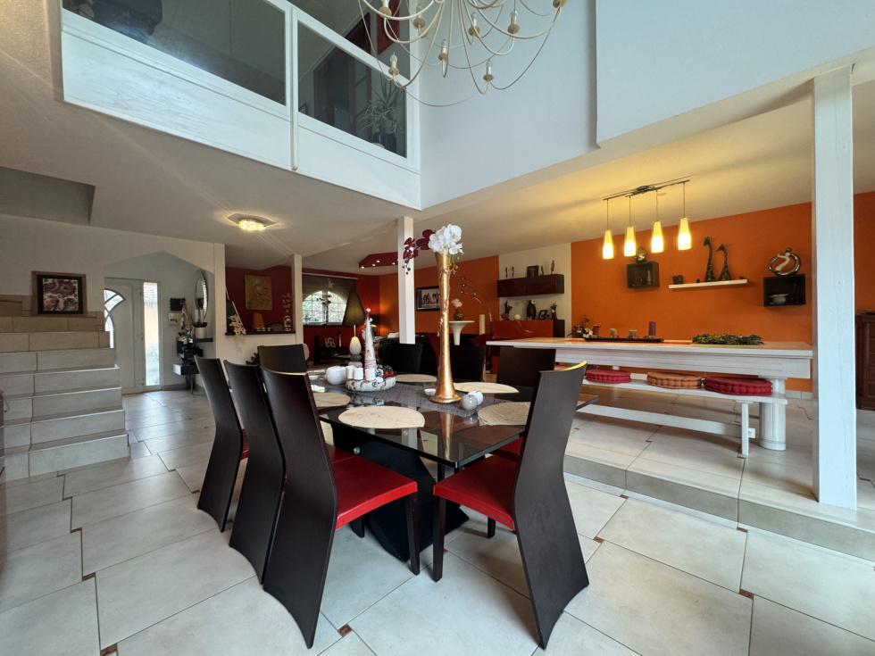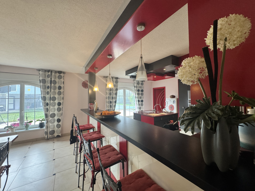3%.COM EXCLUSIVITE - Au centre de MOMMENHEIM, très belle maison contemporaine de 360m2 avec piscine sur un beau terrain de 27 ares. --- Située en seconde ligne, à l'abri des regards --- La maison dispose d'une belle et spacieuse pièce à vivre et de 7 chambres - 3 salles de bain/d'eau --- Son aménagement moderne et ses volumes ne pourront que vous séduire! --- Grandes baies vitrées avec vue plongeante sur le jardin et la campagne....un vrai atout pour cette maison! --- Vous recherchez un bien récent dans un village dynamique , alors n'hésitez pas et venez visiter cette maison. --- Moderne, spacieuse, au calme -- Très fonctionnelle , idéale pour famille! --- Un grand jardin avec piscine,2 dépendances et 2 garages complètent ce bien. --- Au rez-de-chaussée: -- 1 entrée avec un espace vestiaire -- 1 espace à vivre qui donne sur la terrasse -- 1 cuisine aménagée et équipée avec ilot central -- 1 espace cellier/buanderie --1 toilette séparé --1 salle d'eau -accès au garage --Au 1er étage: --1 suite parentale avec espace dressing et salle de bain privative -- espace bureau -- 5 chambres -- Salle de bain - baignoire- douche --Au 2ème étage - 1 chambre Extérieur: - un grand jardin arboré avec 2 dépendances ( dont 1 avec toilette -rangement - garage) - piscine - Garage avec espace cave- atelier -- les +++: intérieur spacieux et moderne - grand jardin --- Divers: -- Chauffage au sol à tous les niveaux, PAC (2019) --DPE:B - GES:A -- Dans la commune, vous trouverez toutes les commodités: gare, crèche, école maternelle, primaire, petits commerces, boulangerie, restaurants, médecins génréralistes et spécialistes ... -- Contactez Sandrine ROTH 3%.COM au O6 58 67 64 84. Du lundi au samedi de 9h00 à 19h00. -- Agence Immobilière ROTH IMMOBILIER Sarl 3%.COM, RCS 803 863 638. - Agence et vitrines à Hochfelden, siège à Gimbrett-Kochersberg. -- Réseau national à honoraires réduits: 3% TTC
