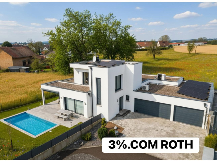 3%.COM - NOUVEAUTE - A Berstett- Rumersheim, venez découvrir cette magnifique maison à toit plat construite 2021 de 160m² avec piscine -- La maison dispose d'une spacieuse pièce à vivre, de...